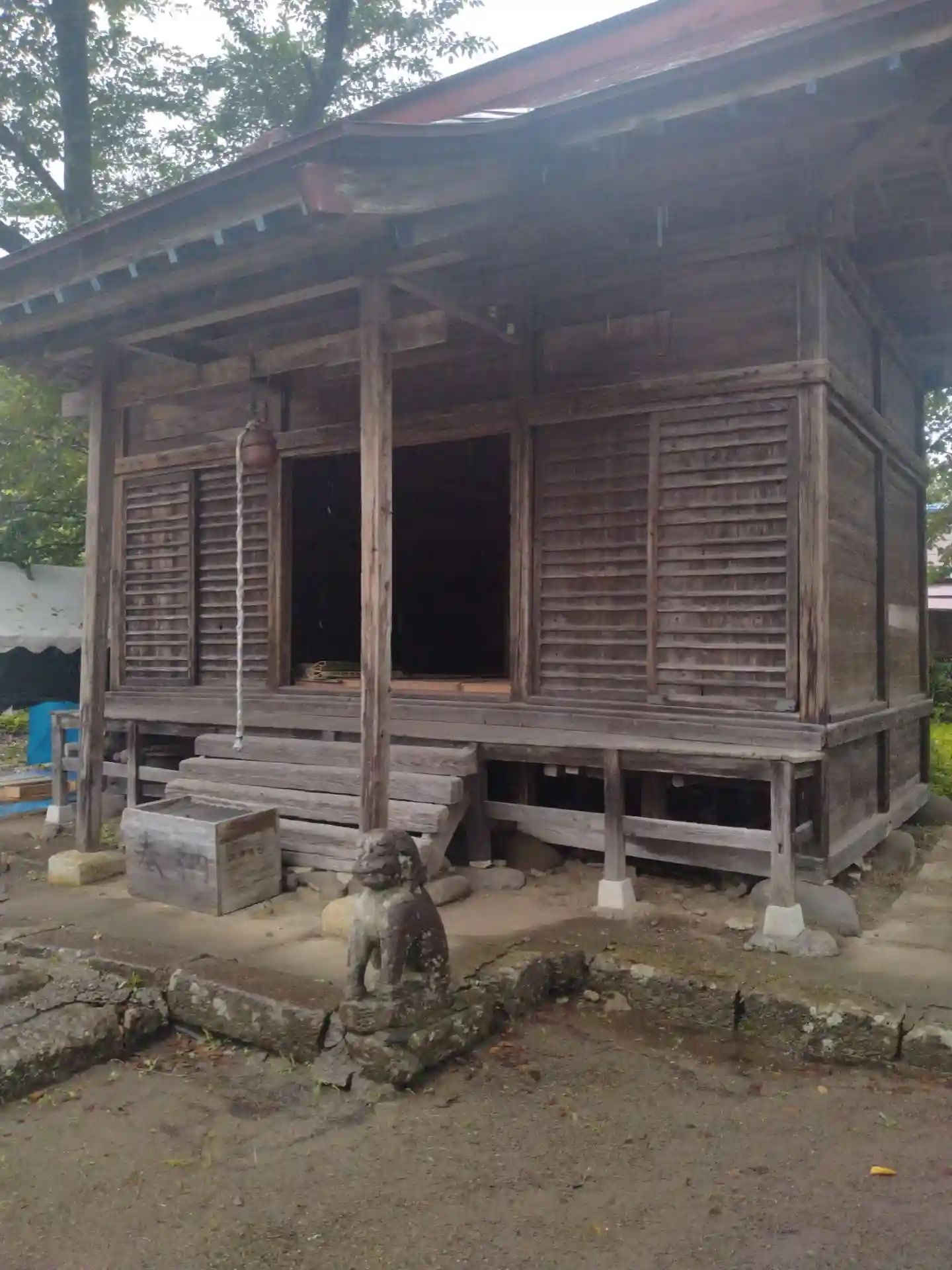 神明神社 拝殿前の様子です(修繕中)でした
