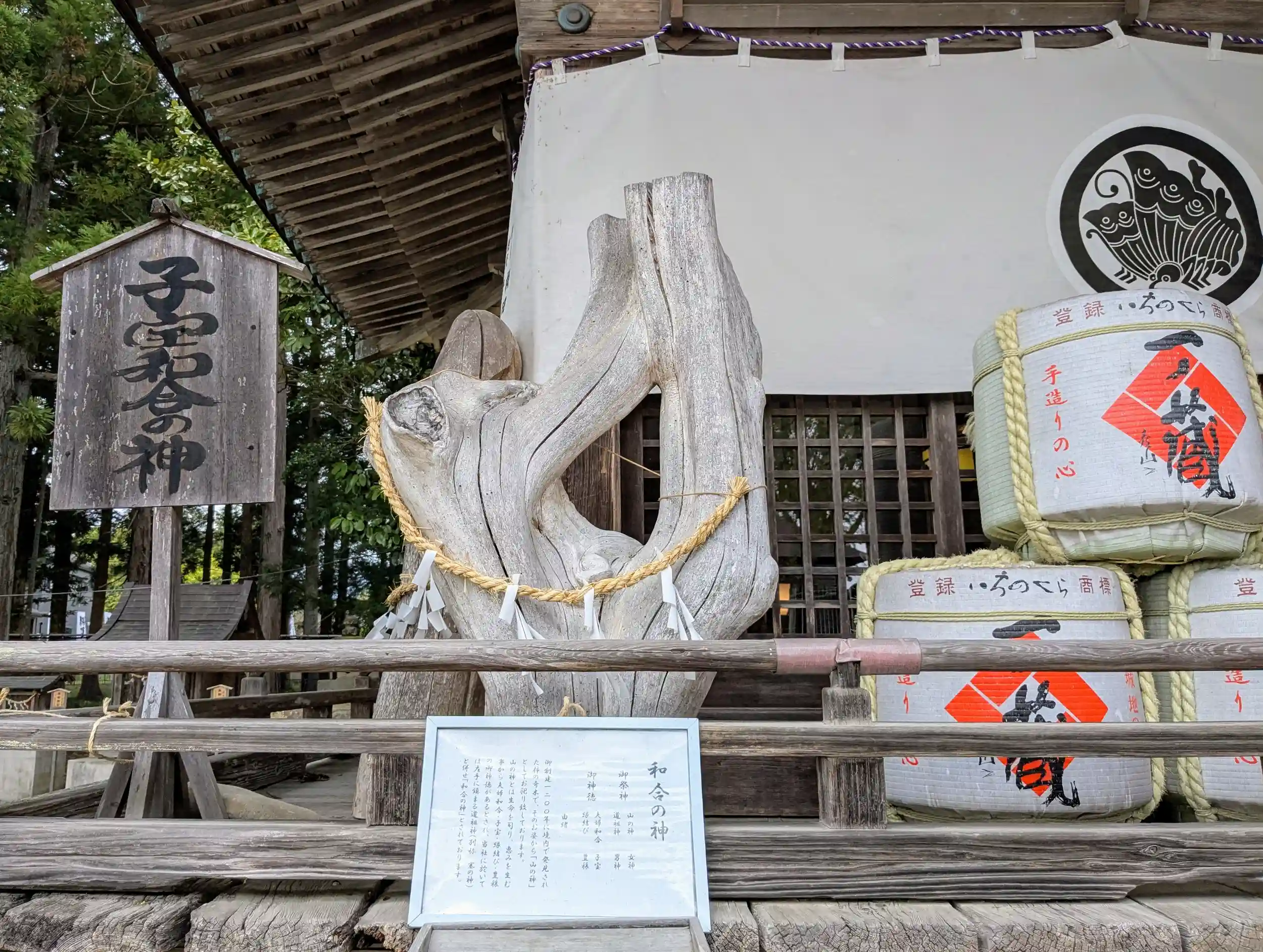 御朱印待ちの大きな木札や長床造りの門、初体験の重軽の木(石じゃないのです)など、