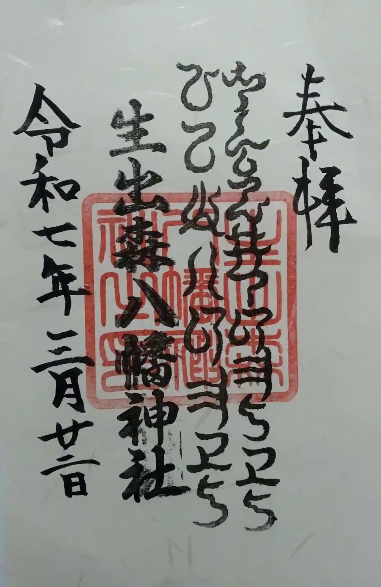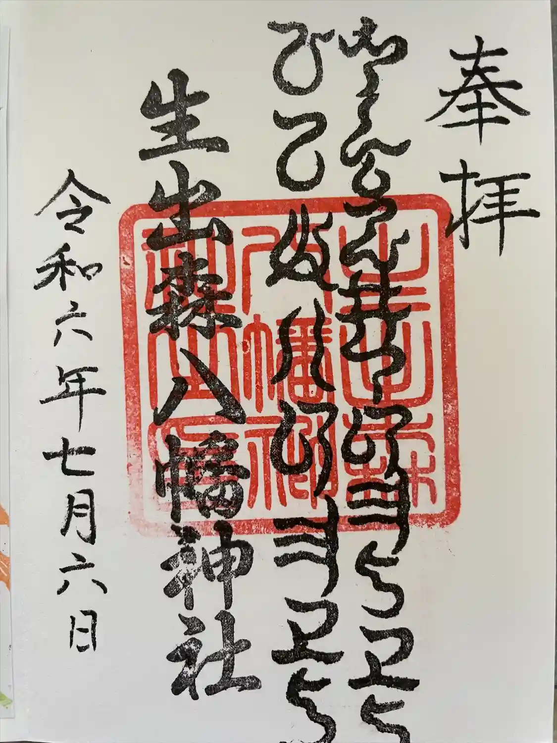 生出森八幡神社(里宮) お忙しい中(親切に対応して頂き、直書き御朱印頂戴致しました