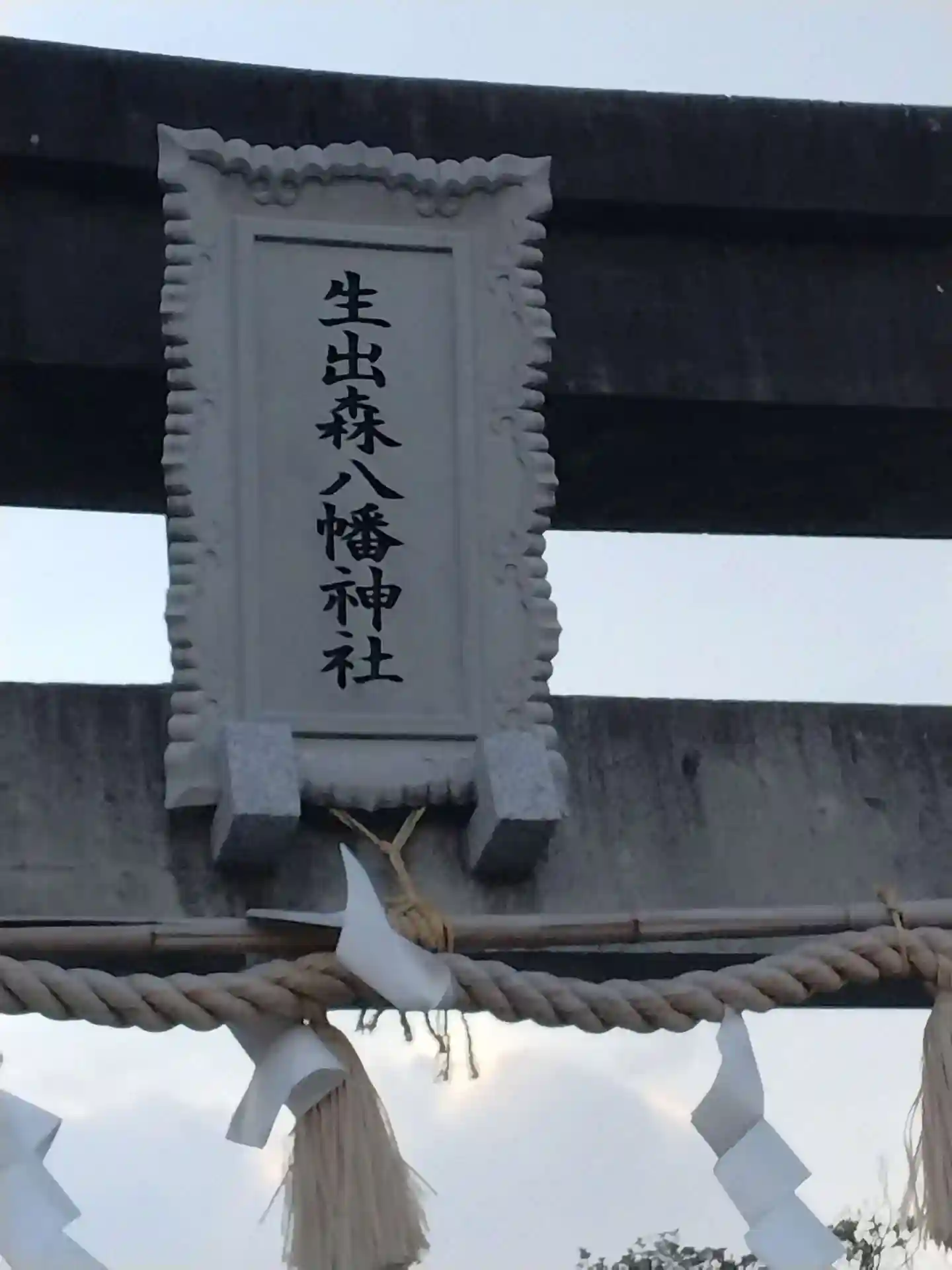 生出森八幡神社(里宮) 鳥居上部に掲げてある(生出森八幡神社)社額です