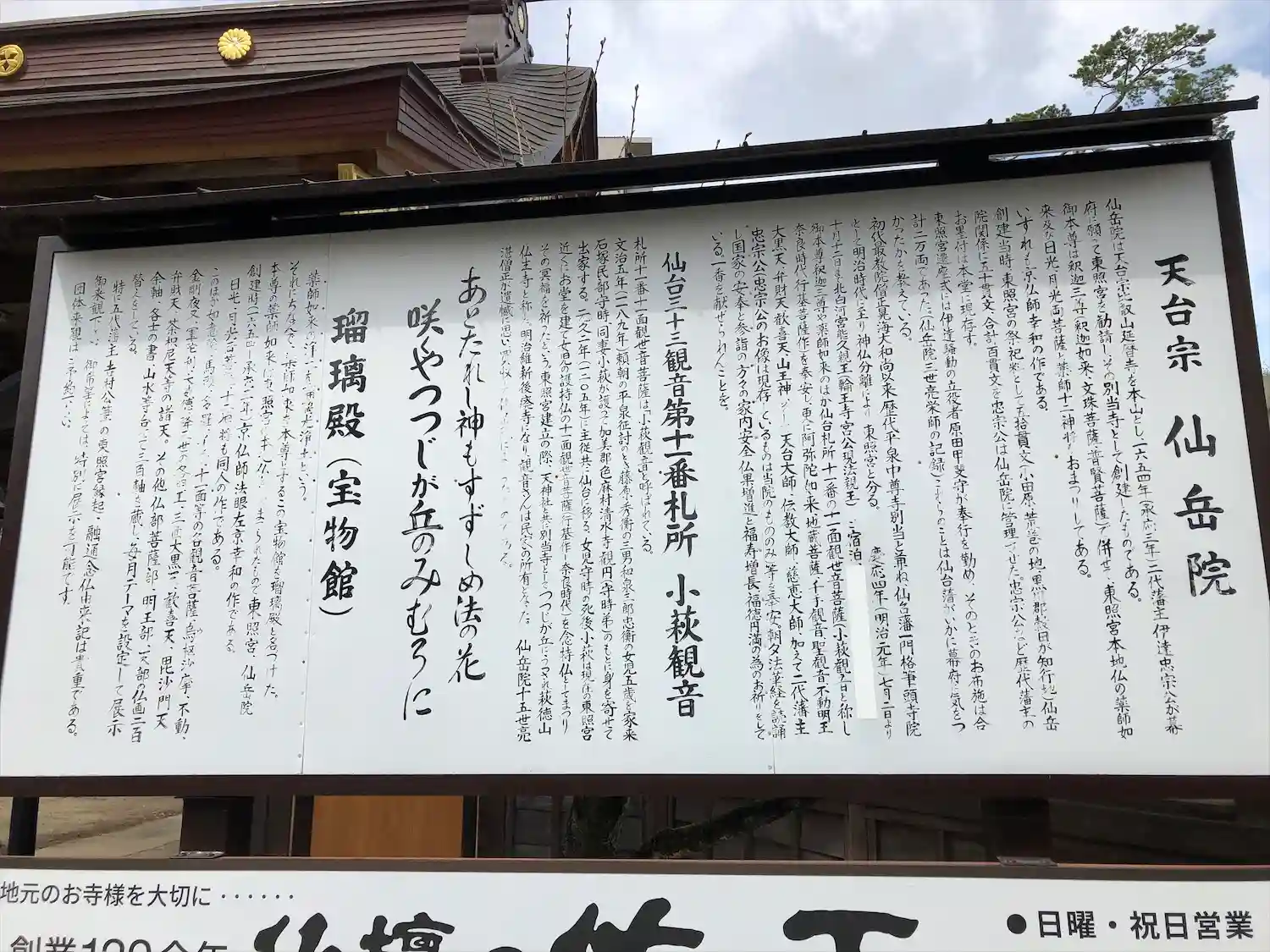 宮城県仙台市青葉区東照宮に境内を構える、眺海山 仙岳院、2023に奥の細道みちのく路、北國八十八ヶ…