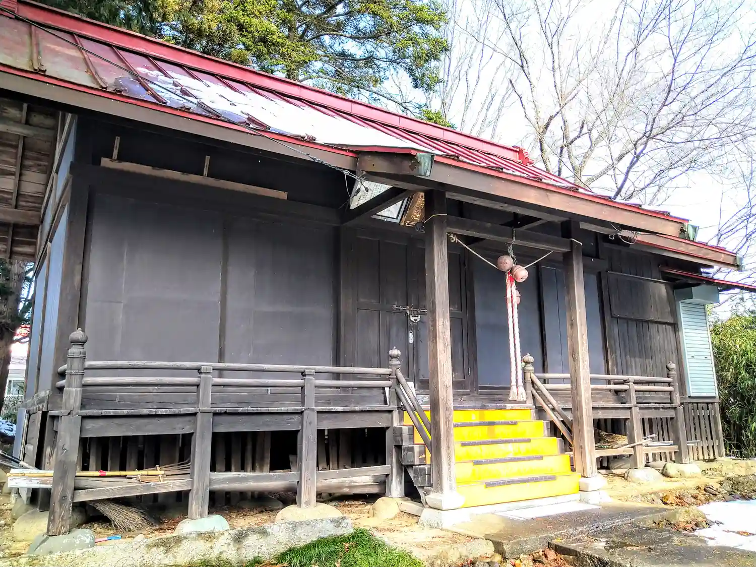 神明社(荒巻) 拝殿前に国旗が、ありました