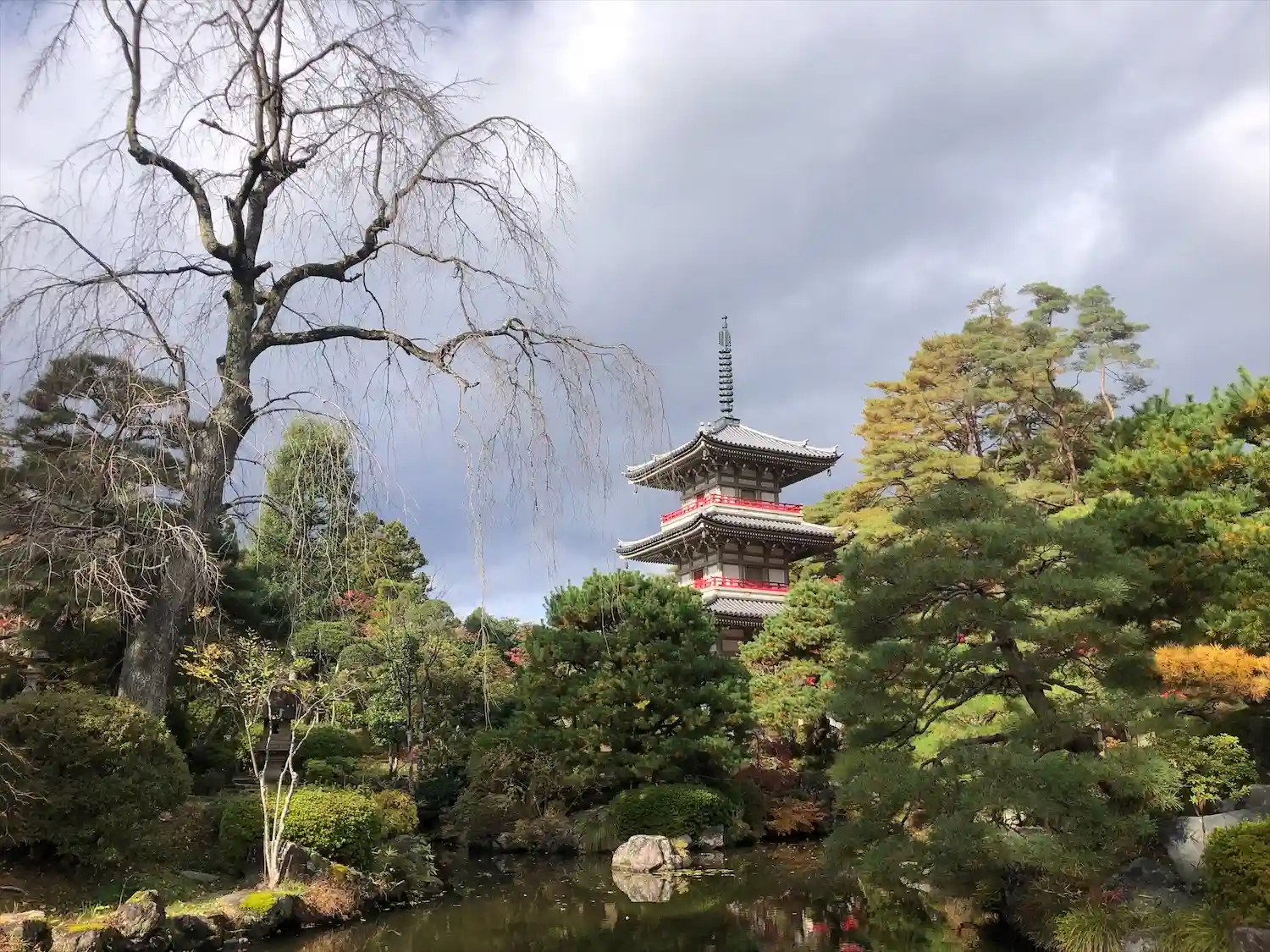 奥には三重の塔