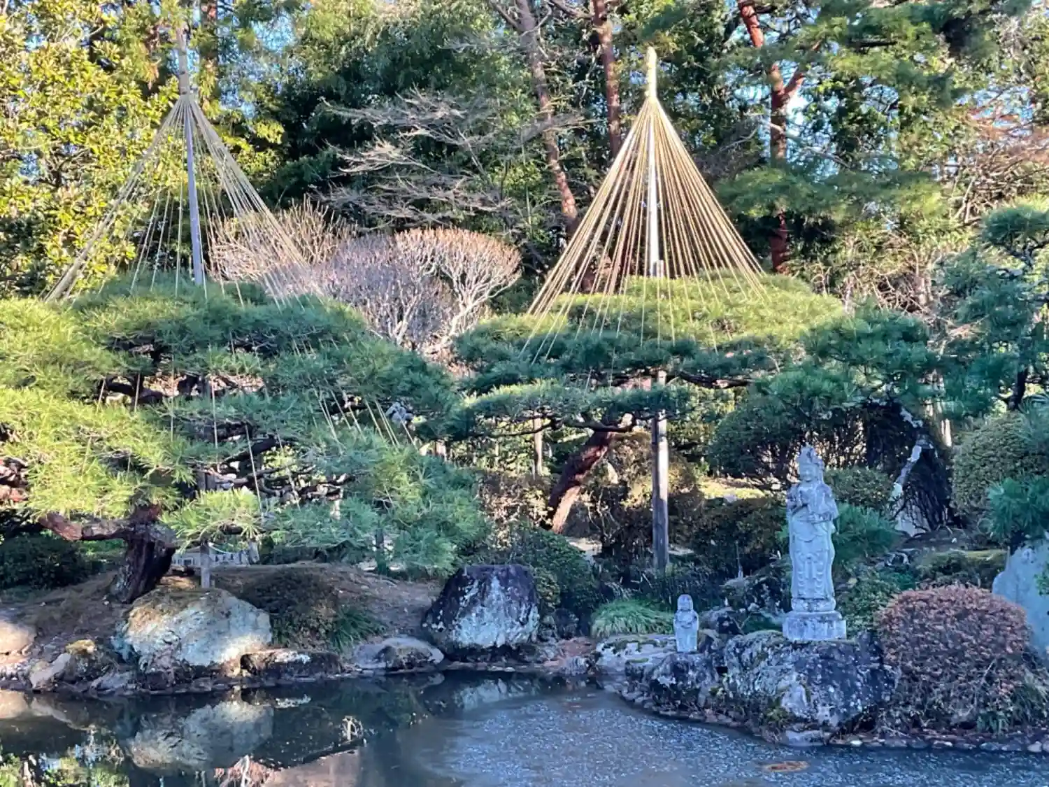冬支度の雪吊りがされていました。