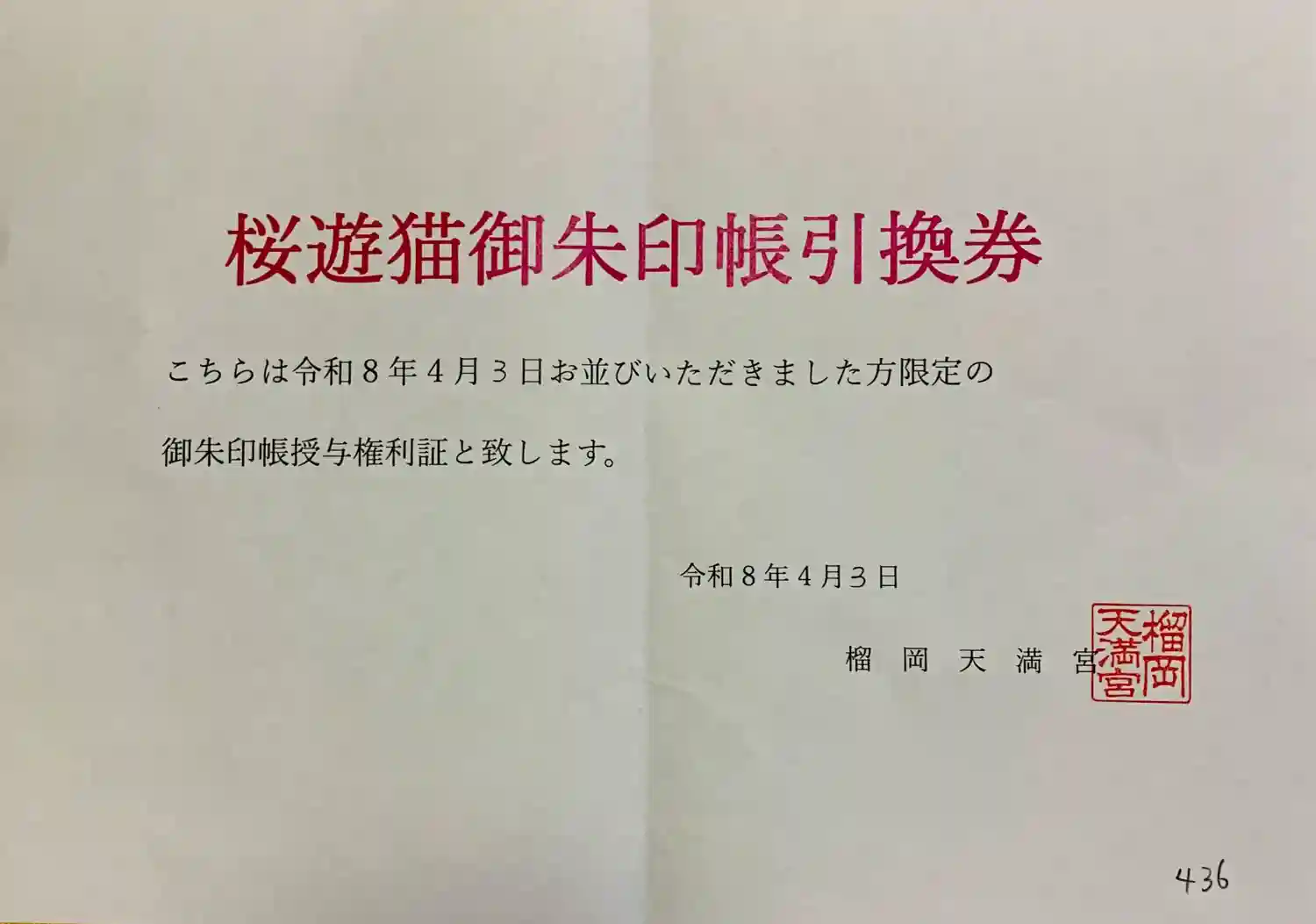 神職の方に頒布終了なのか、お聞きしたところ、今日は何とか『授与権利証』をいただくことが出来、4月末までにGET出来そうです。(良かった〜😆)