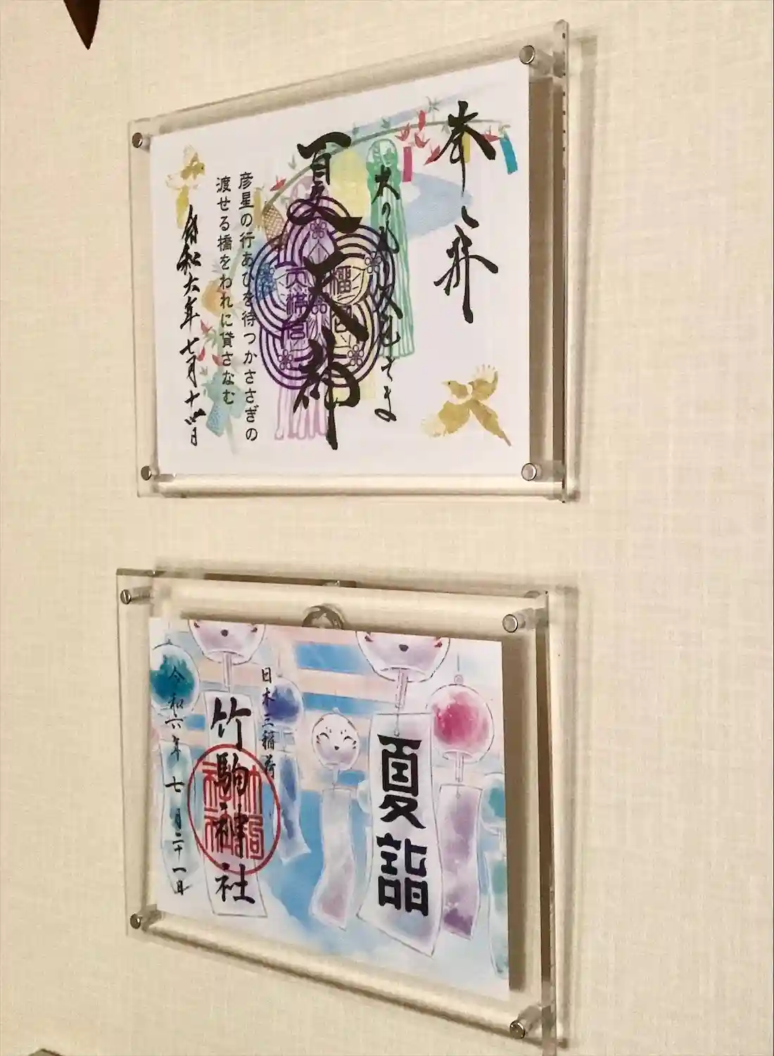 飾られてる御朱印、どちらも涼しげでとても素敵ですね♡
