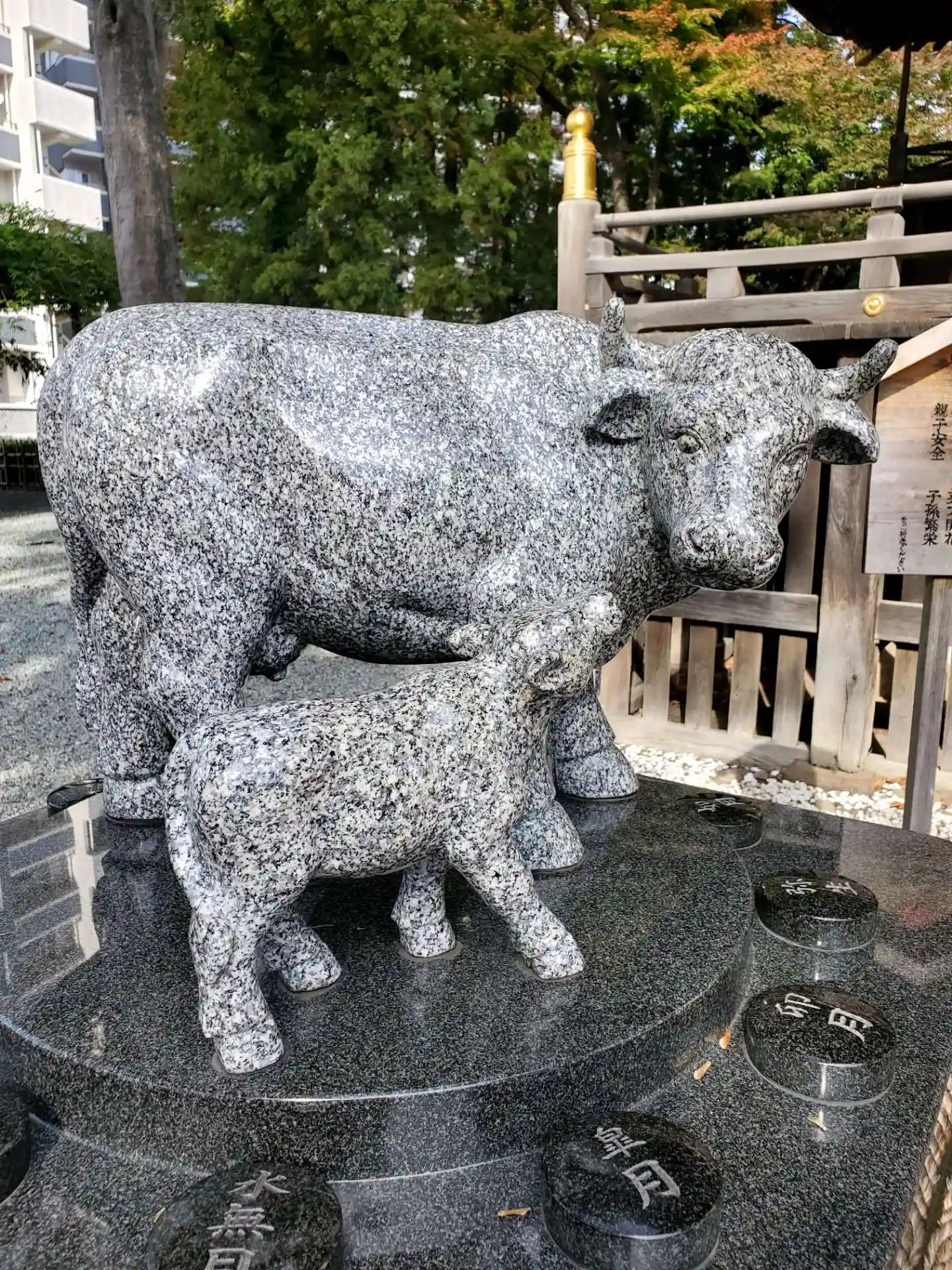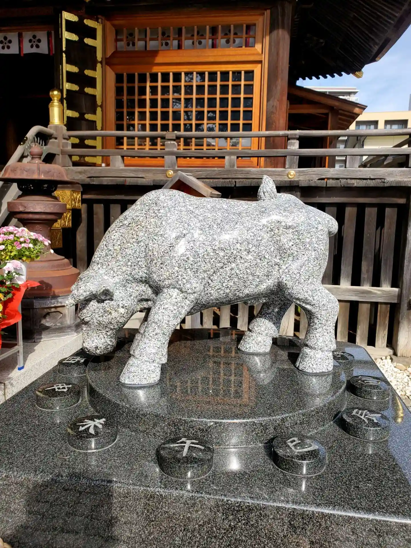 拝殿前には丑年生まれの道真にあやかる「撫で牛」があり撫でる参拝者の多さが一目で分かるくらいツヤツヤしてました‼️