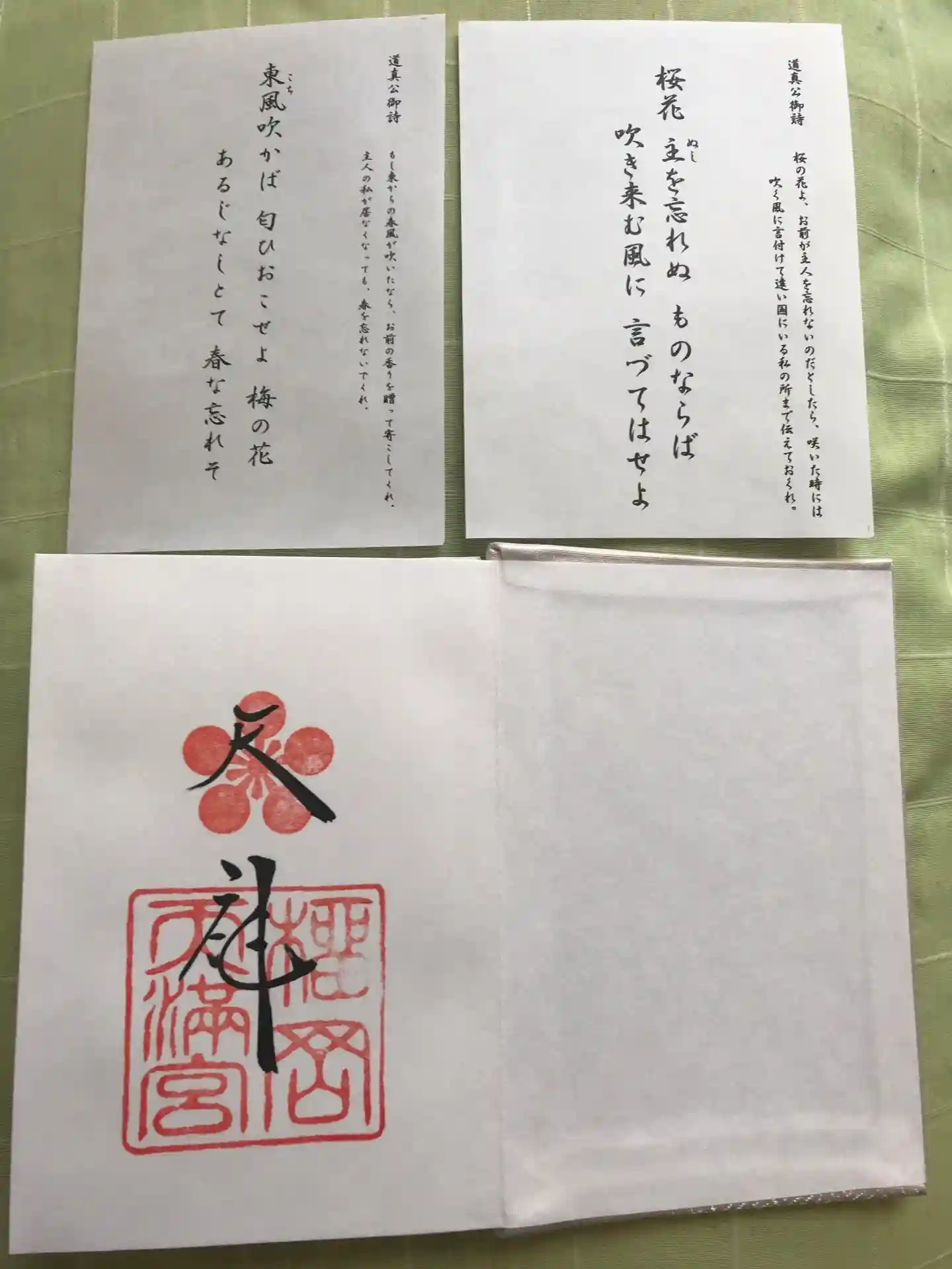 仙台駅に戻って榴岡天満宮で見開きの御朱印を頂きました。 菅原道真公の 東風吹かば匂いおこせよ梅…
