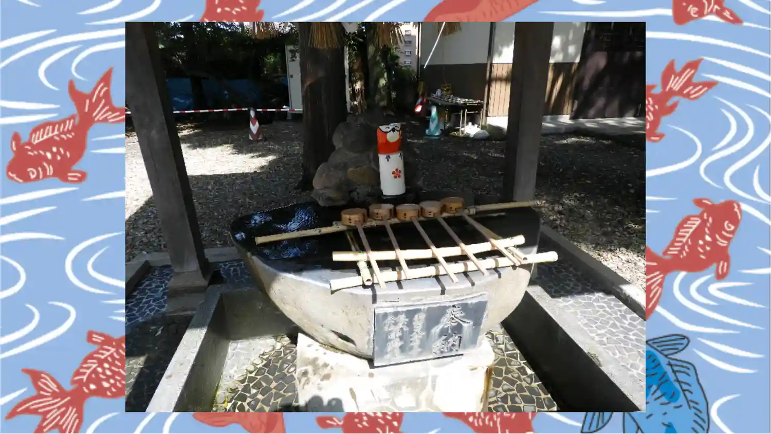 手水舎には海の生き物オブジェが。