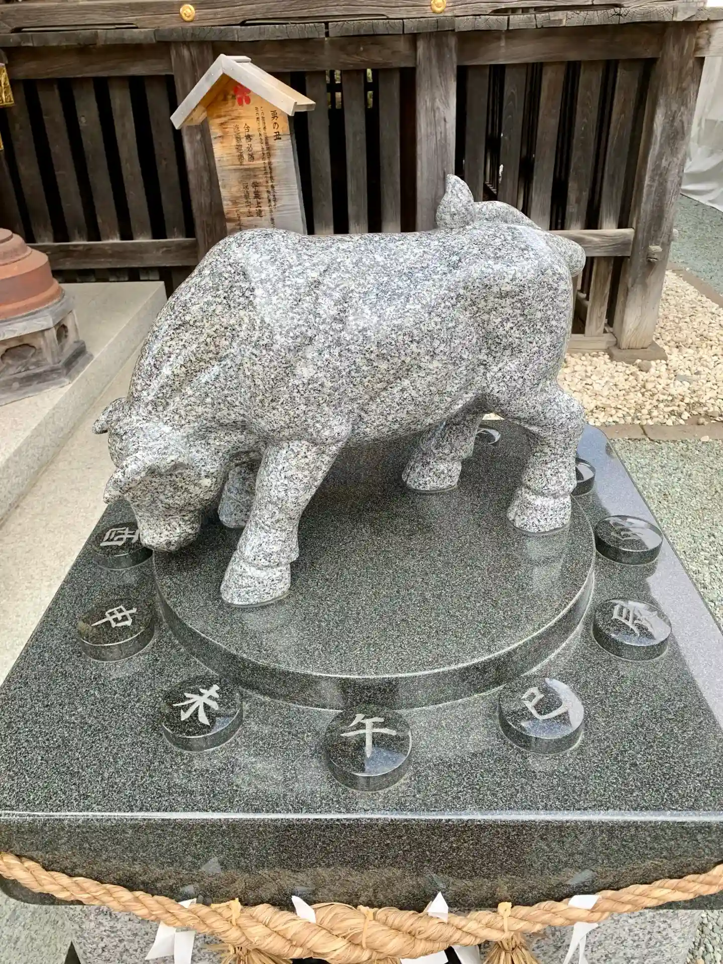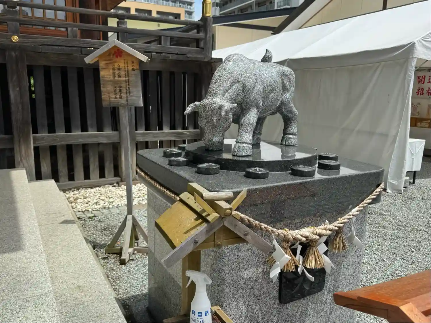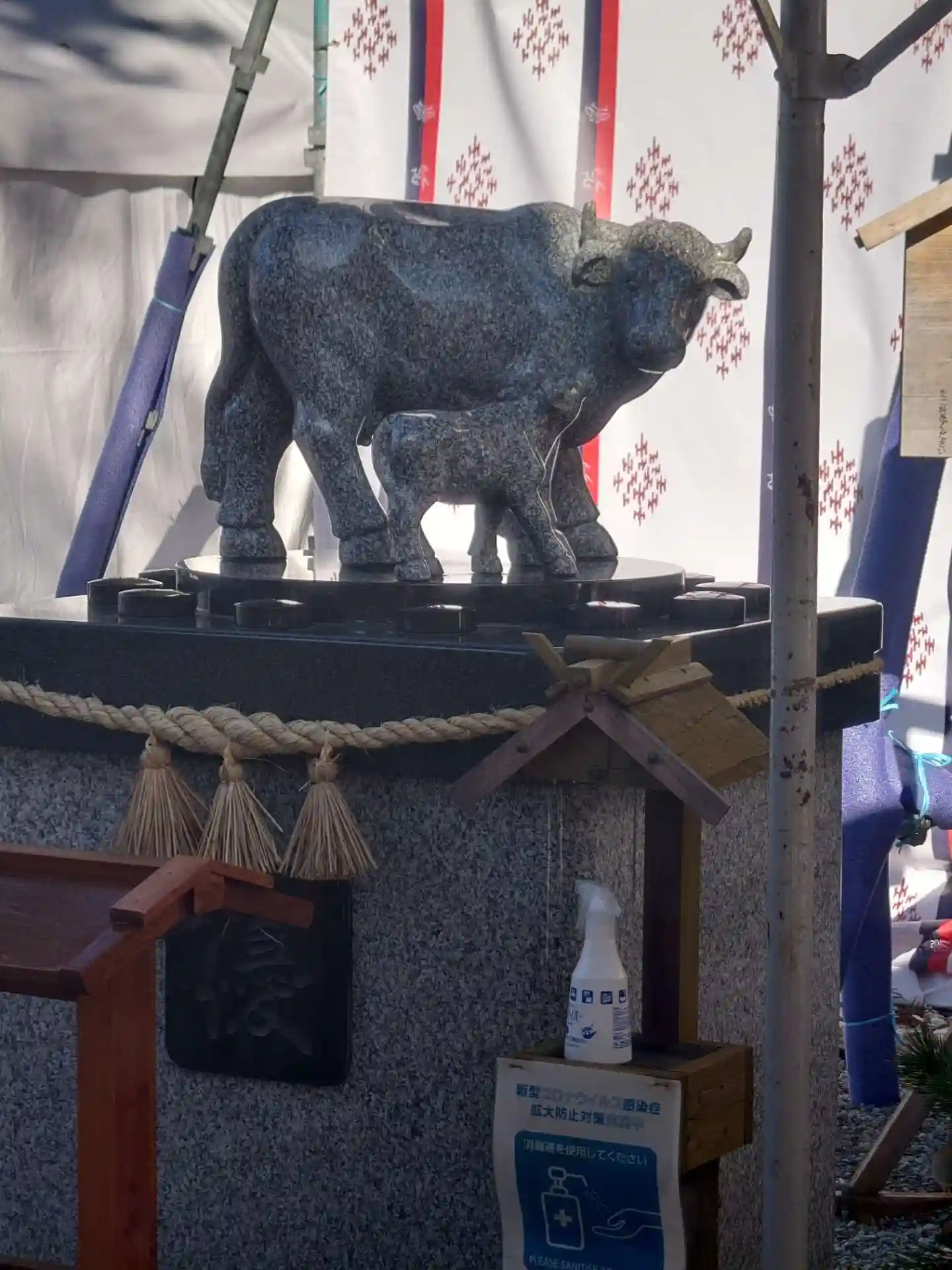 拝殿前には狛犬の代わりに狛牛