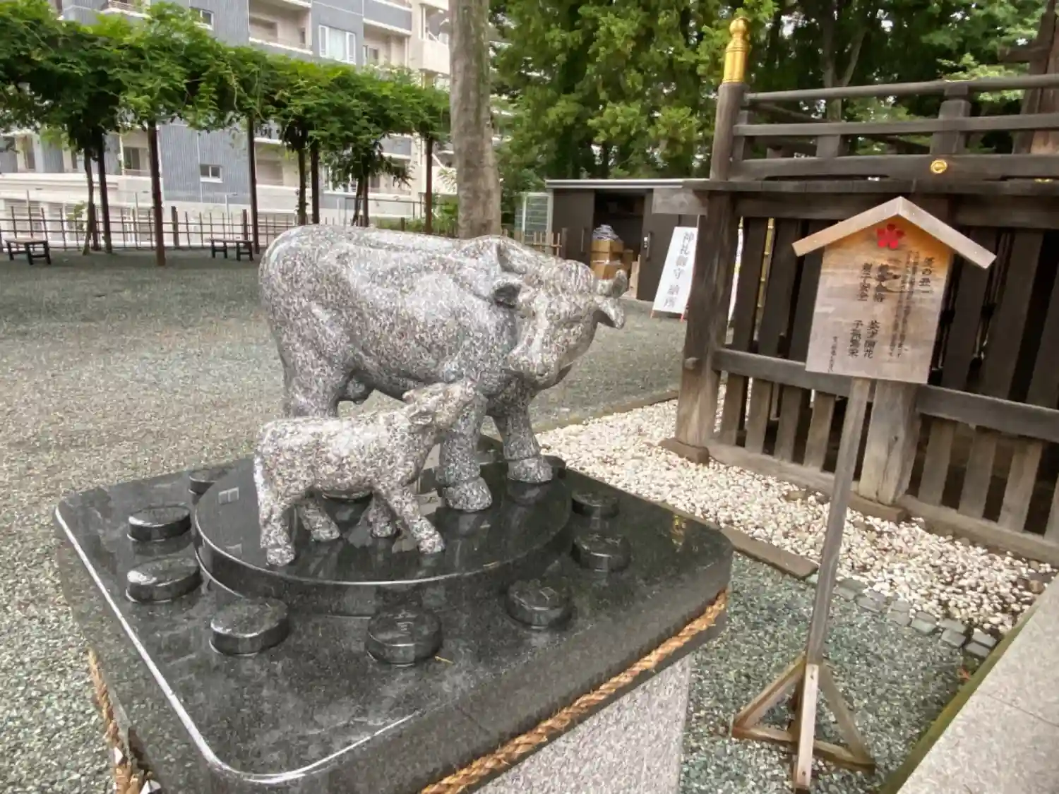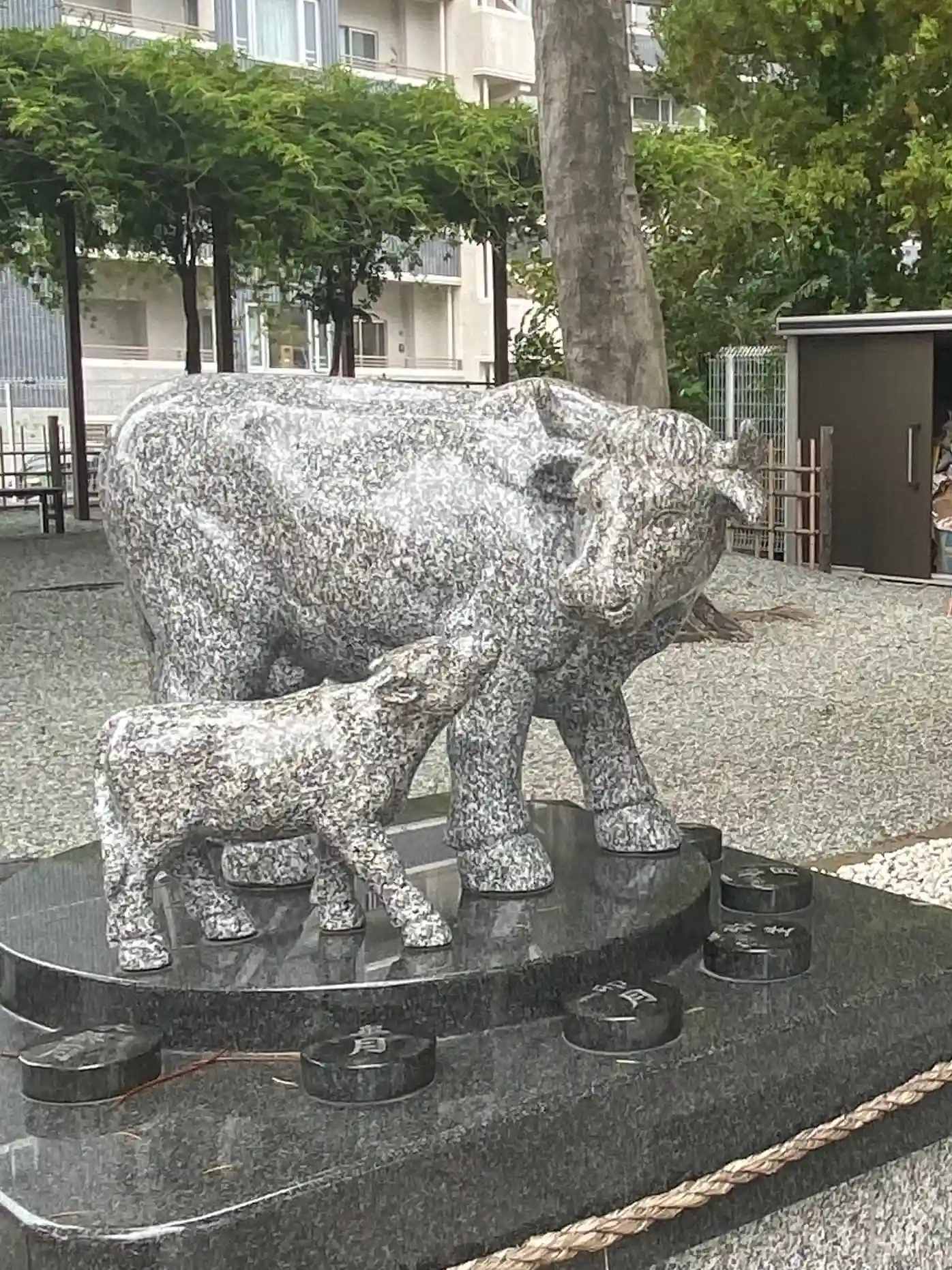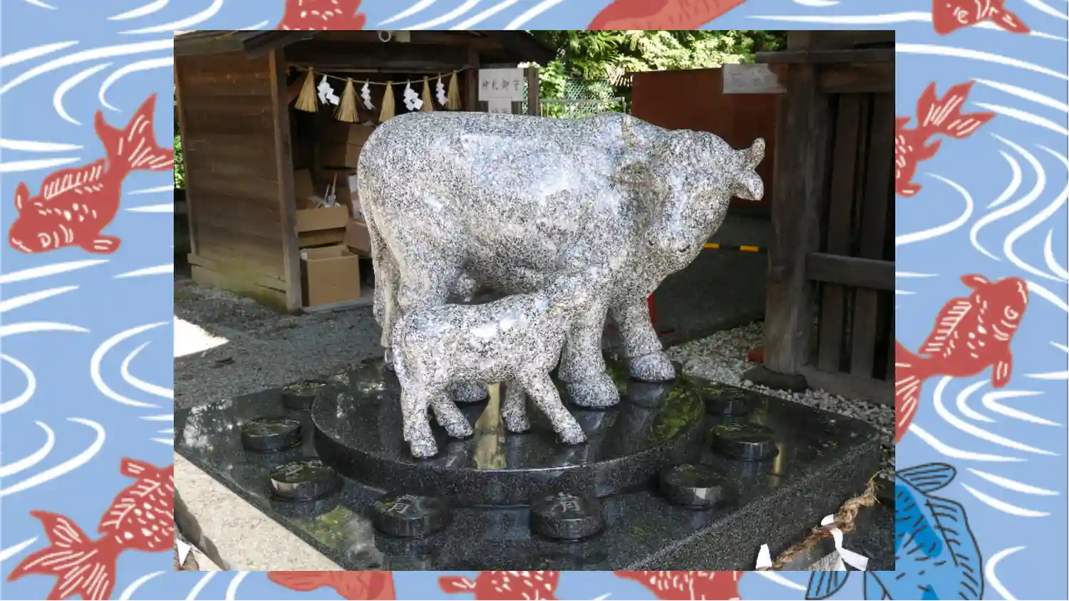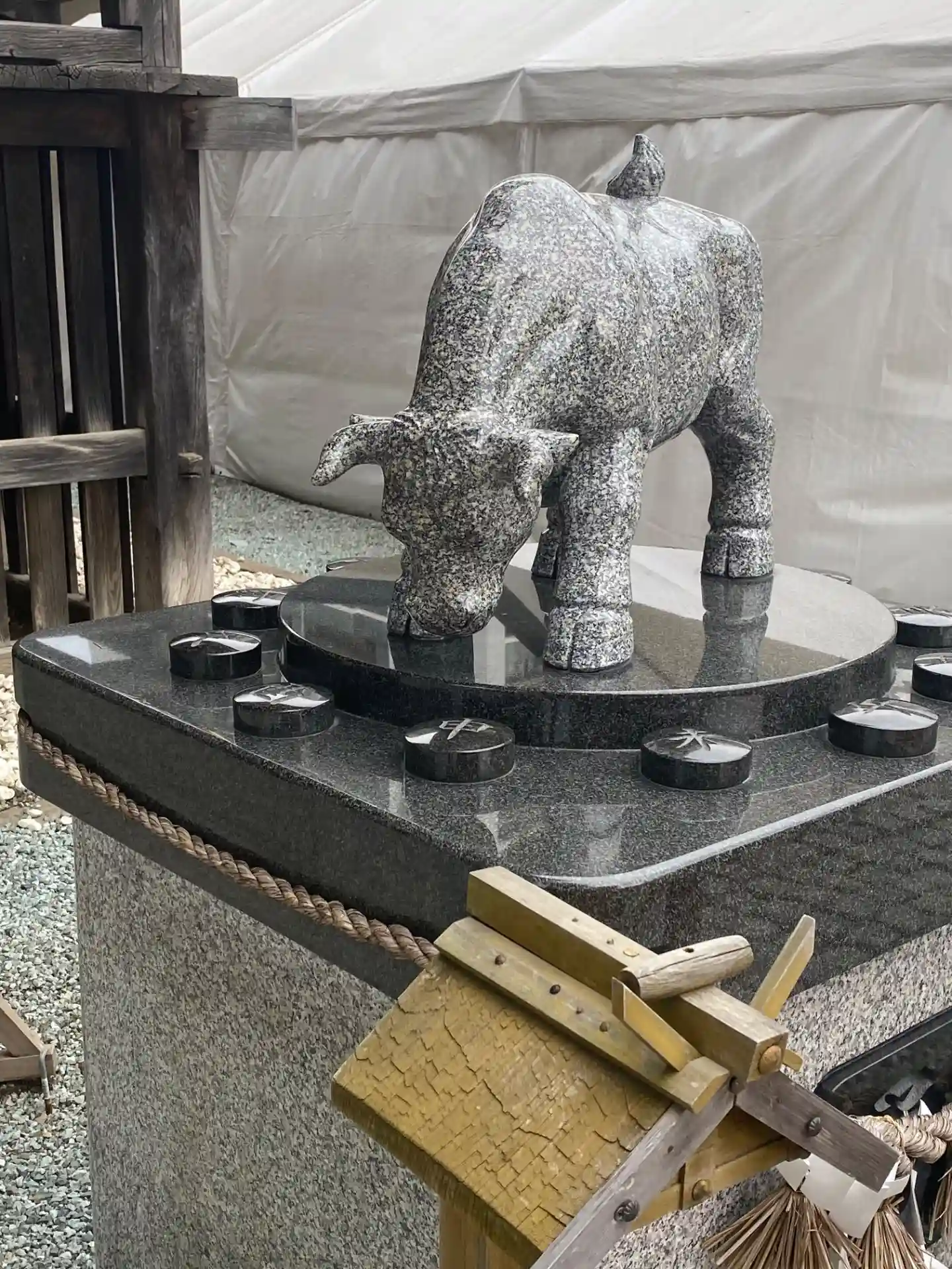 拝殿前には狛犬の代わりに狛牛