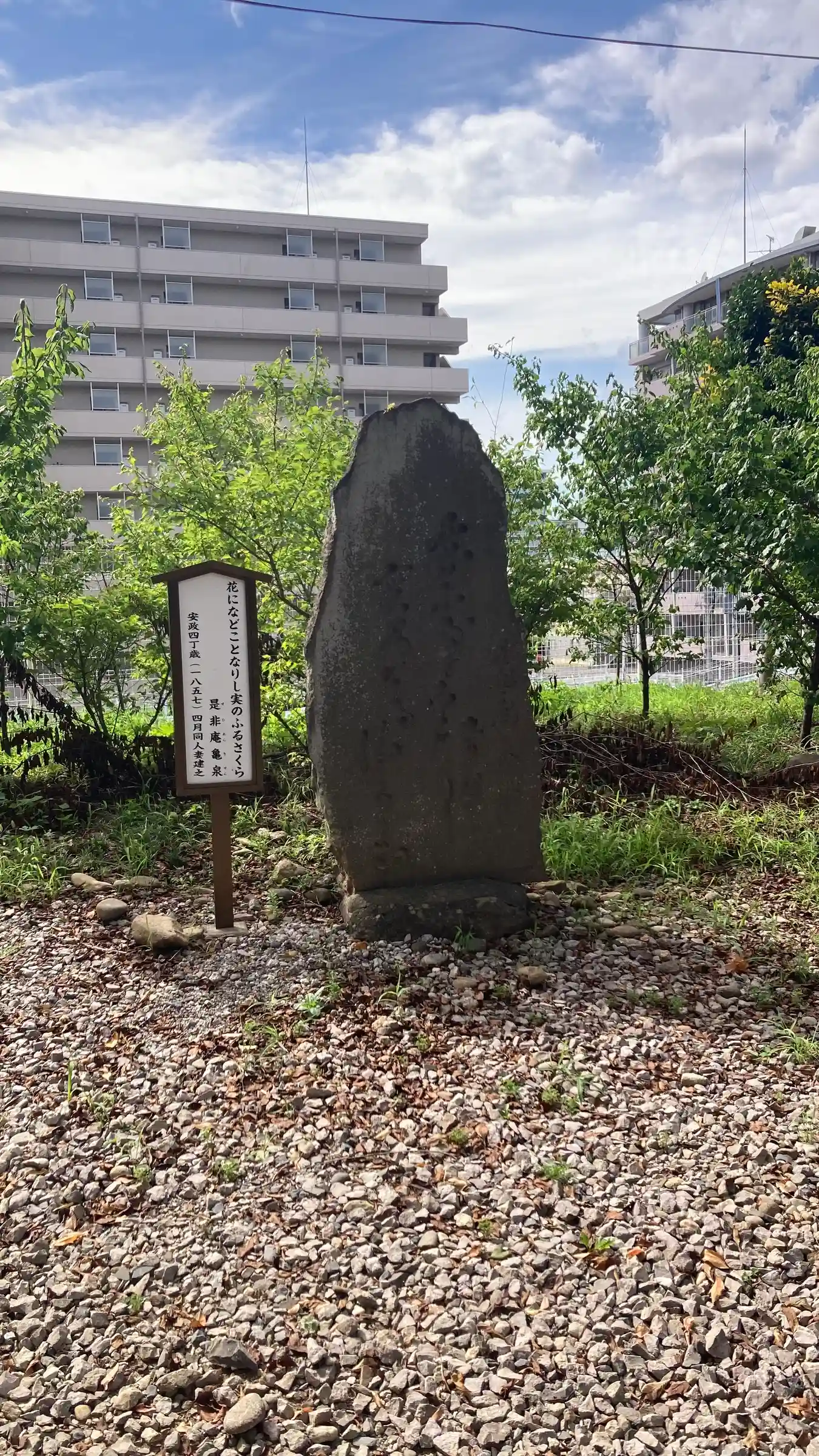 安政四年(1857)建立の是非庵亀泉句碑「花になどことなりし実のふるさくら」