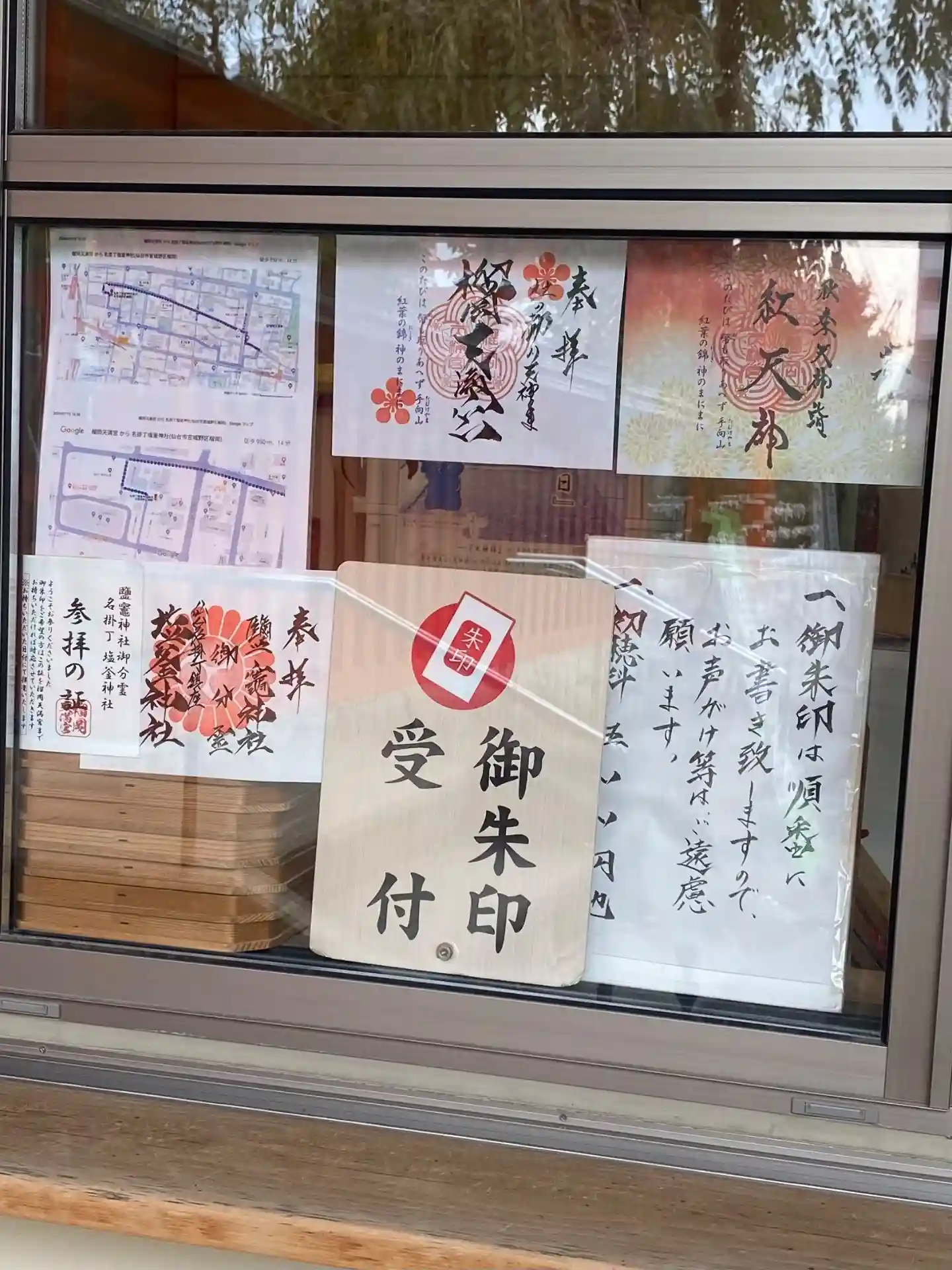 仙台駅に戻って榴岡天満宮で見開きの御朱印を頂きました。