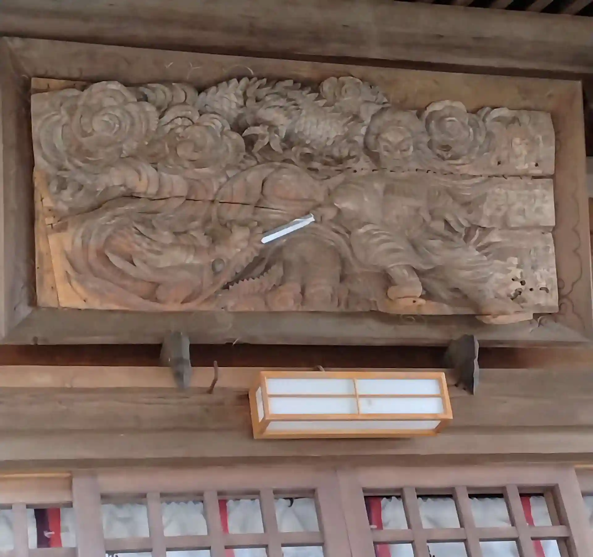 熊野神社 拝殿前上部にある(木鼻)の様子です