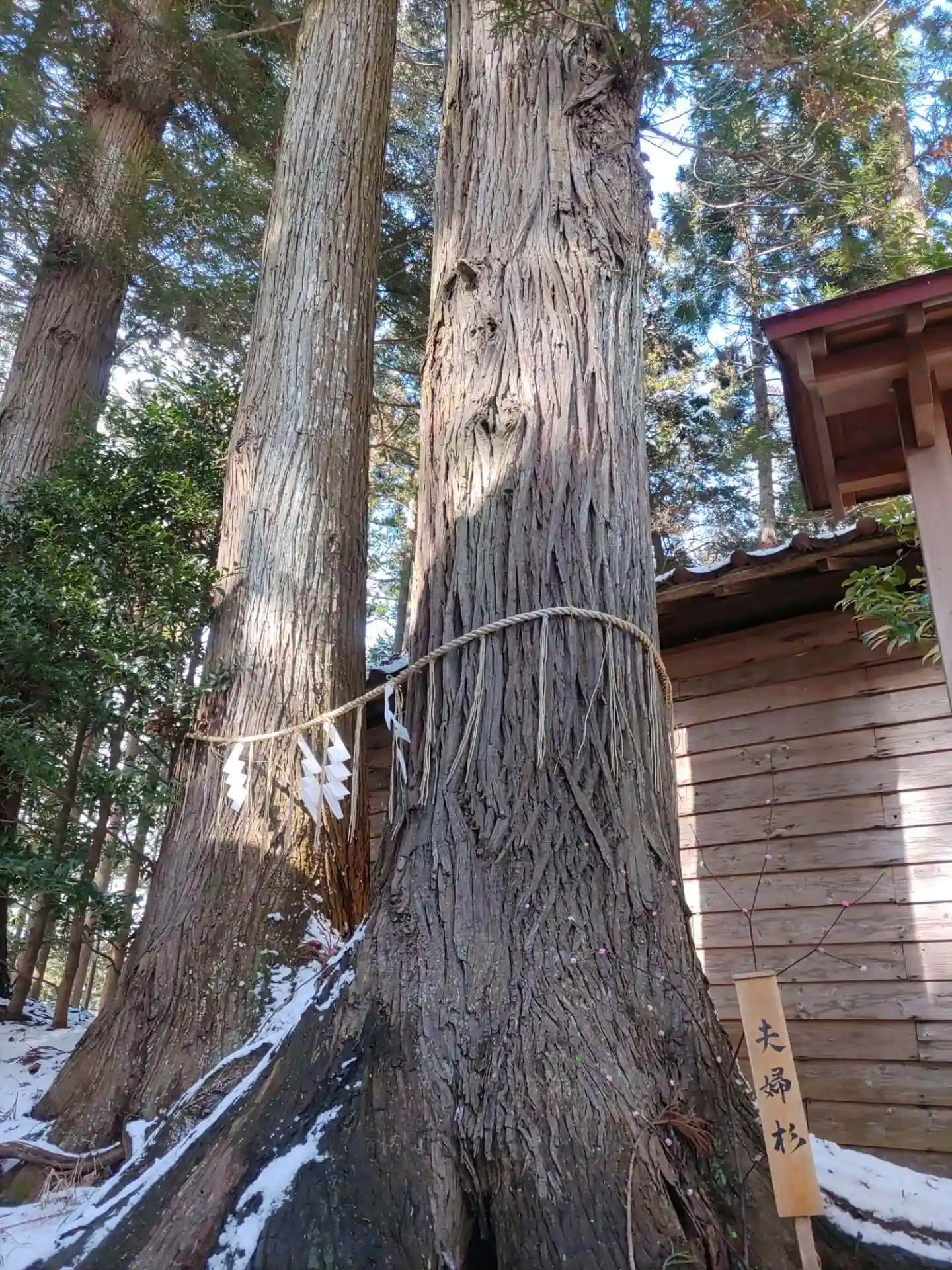 2本の杉が繋がっています