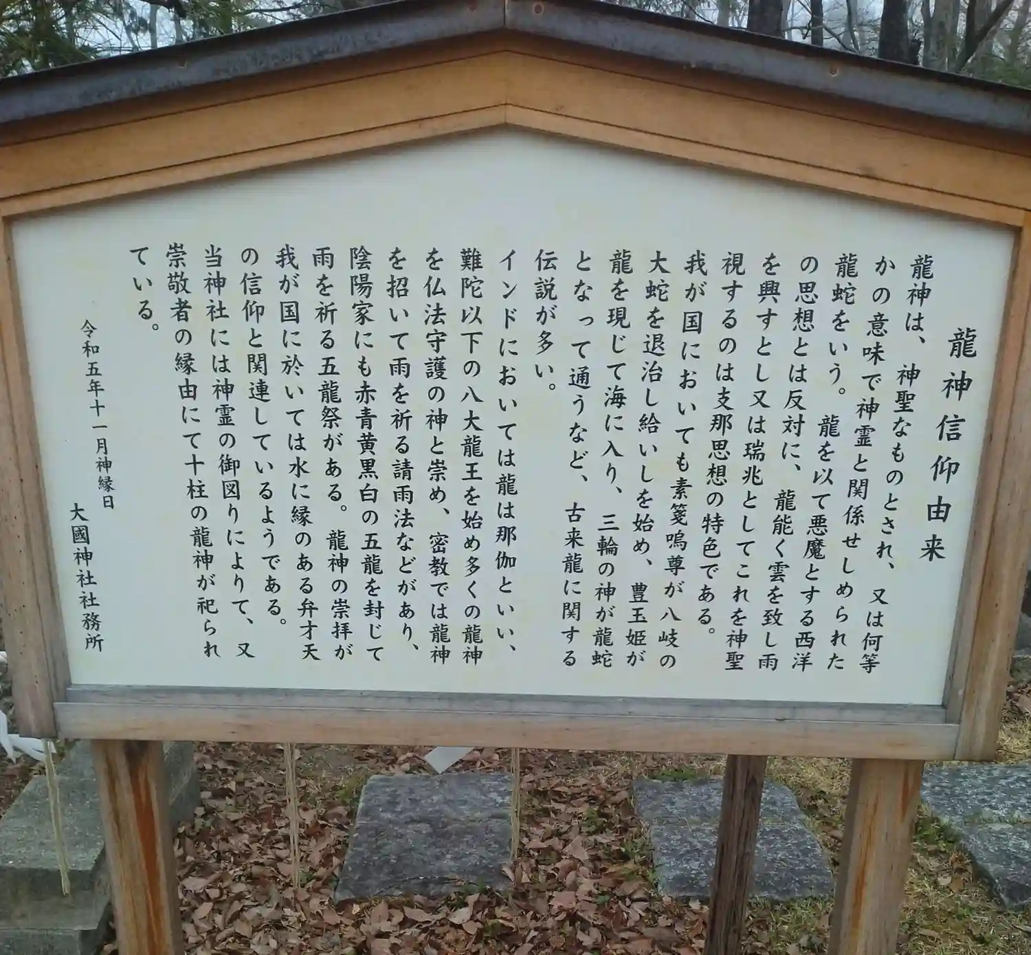 大國神社 龍神社鳥居⛩️左側に(龍神信仰由来)について書かれてます