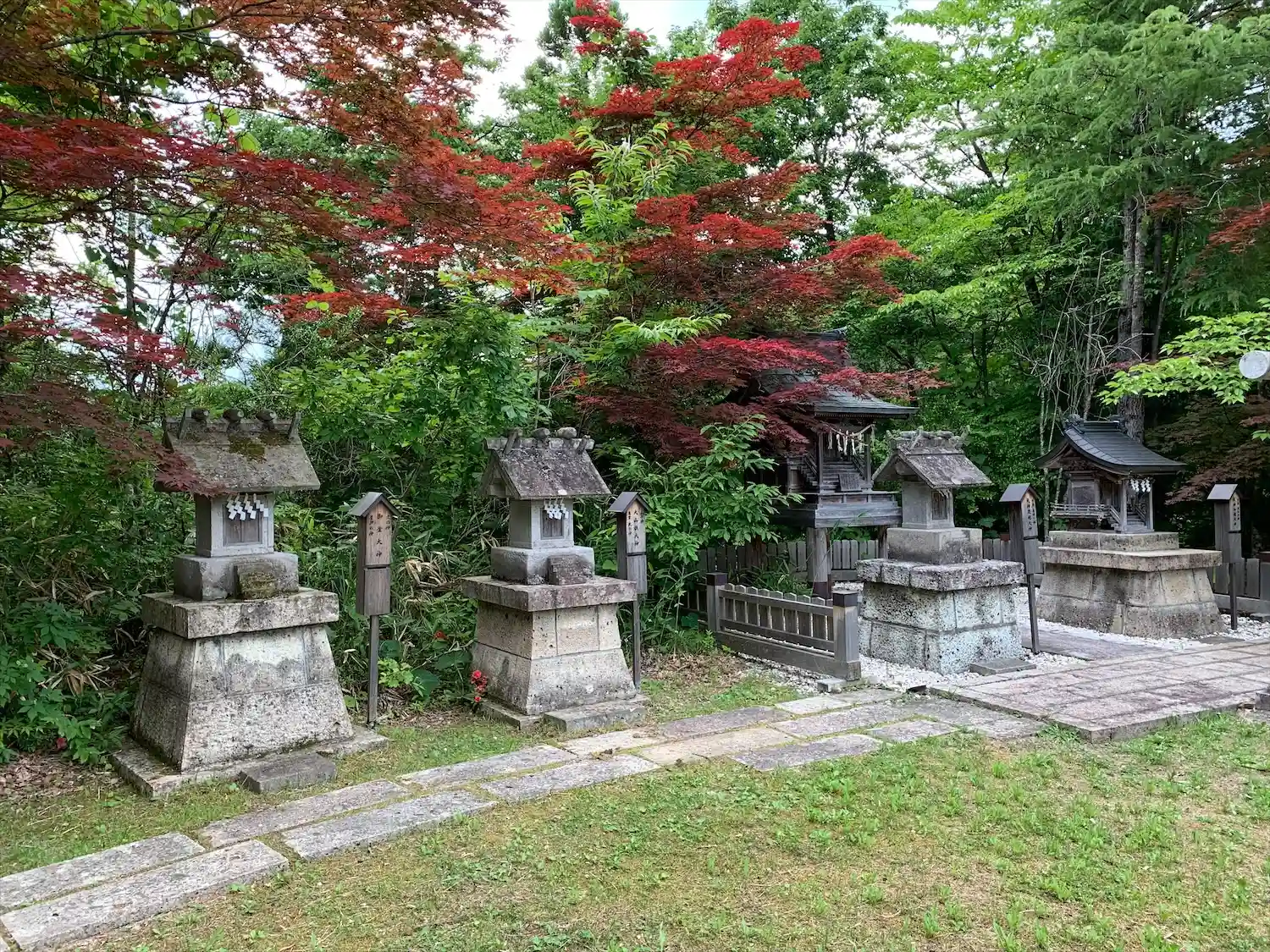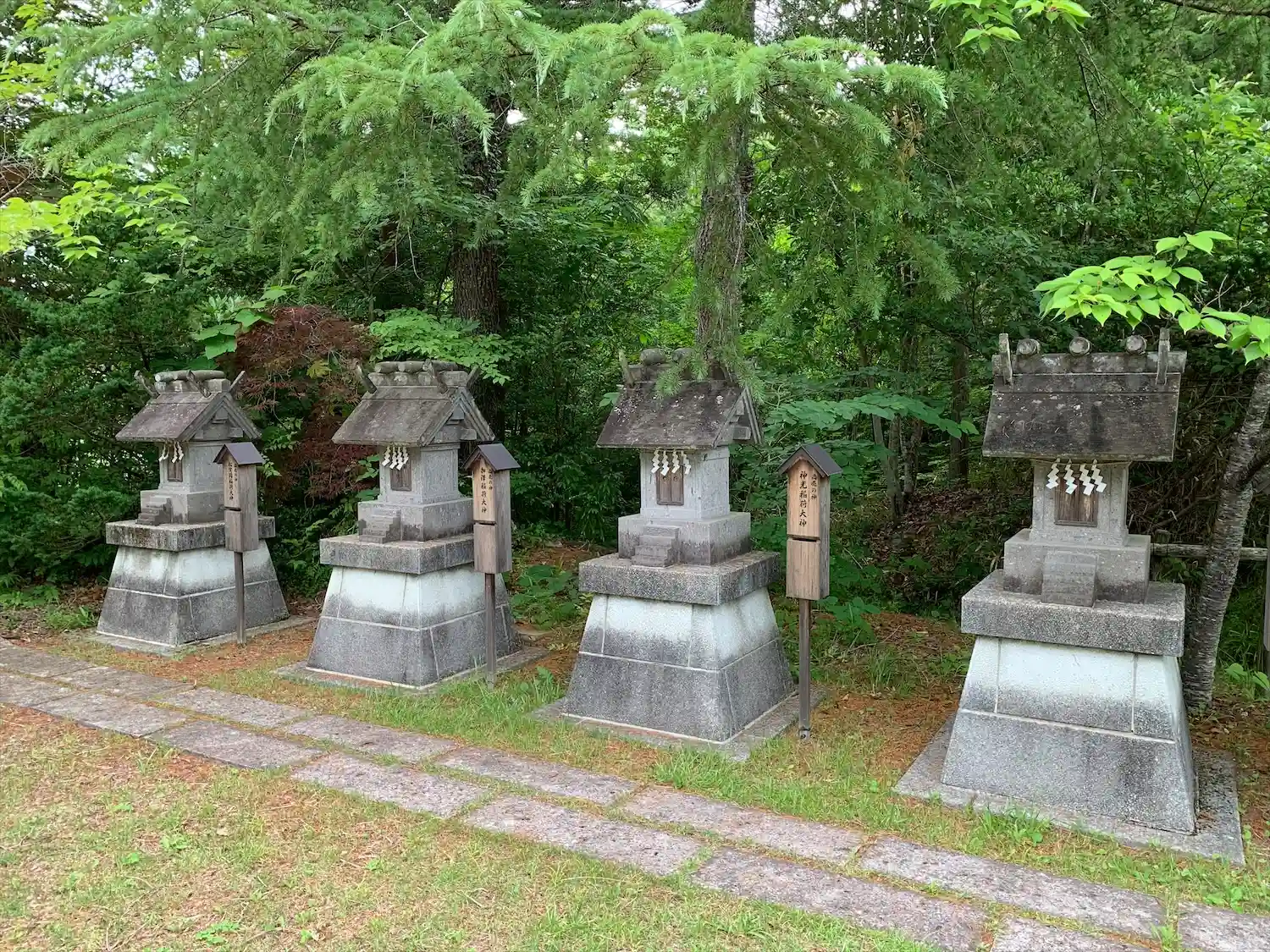 大國神社 境内にある(水の神、水速め大神様、天水水分大神様、国水分大神様)の神碑の様子です