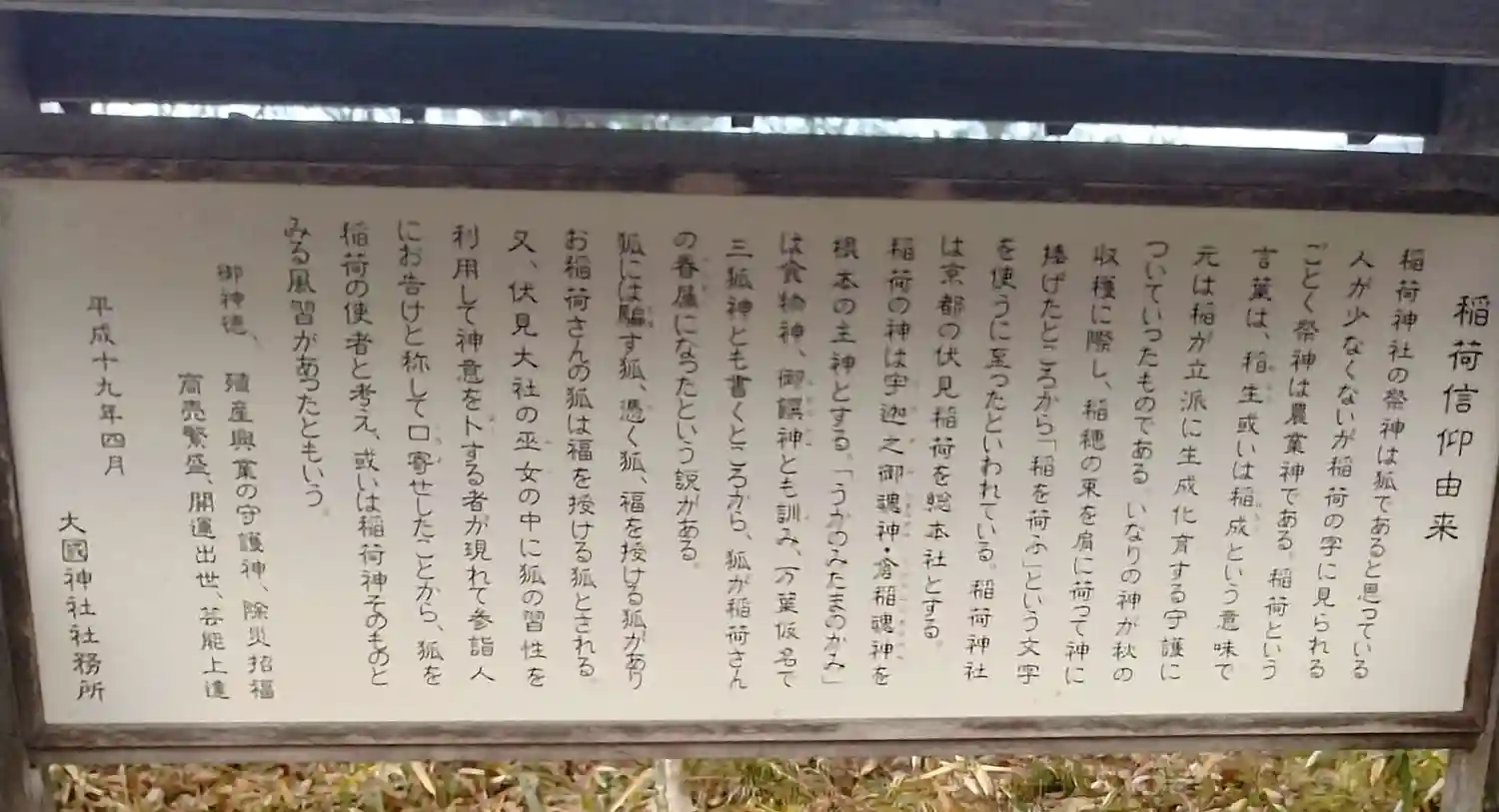 大國神社 稲荷信仰由来について書かれてます