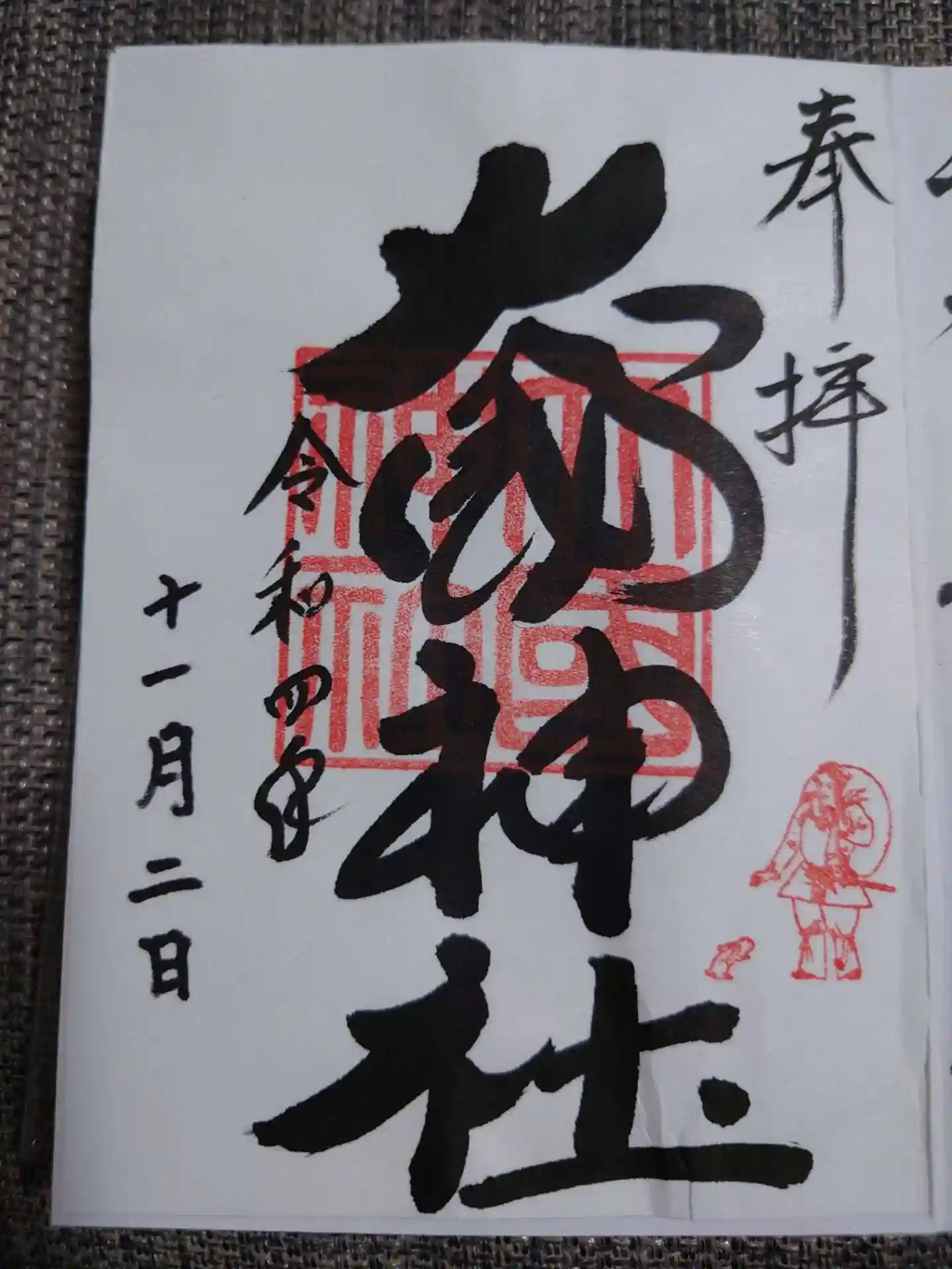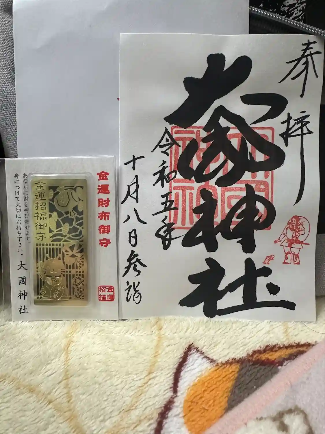 だいぶ前の話になりますが、大國神社に行って、御朱印と御朱印帳を購入致しました。