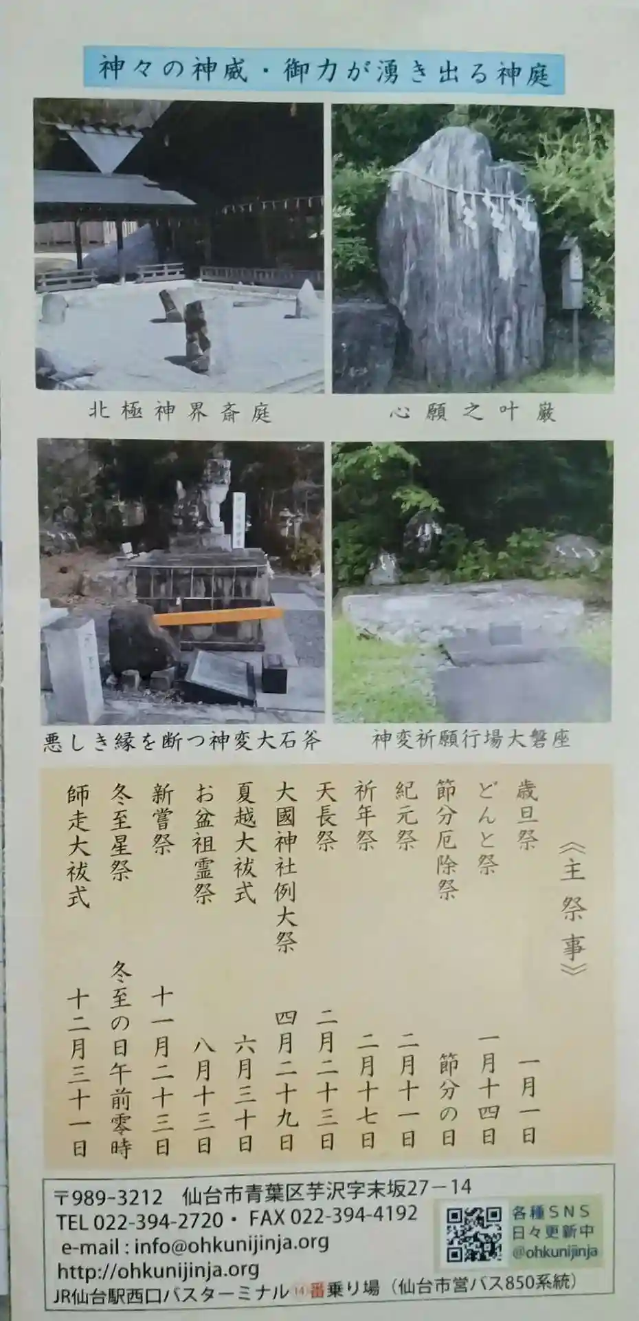 大國神社 神々の神威、御力が湧き出る神威と主祭日について書かれてます