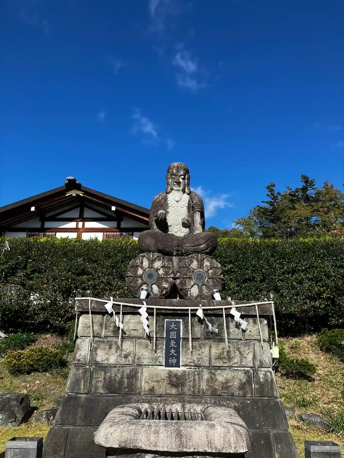 大國神社 顕幽界の守護神(この大き御神像は大国神社の主祭神としてお祀りされている(大国主大神様の神霊が鎮められており(石造りでは日本最大級と伝えられています