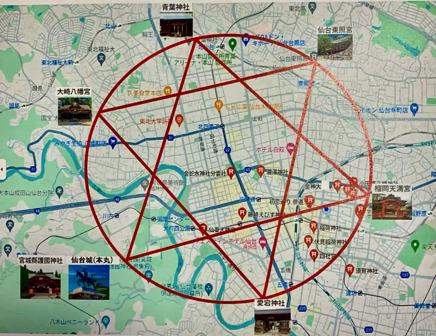 6社を結ぶと現れる『仙台六芒星✡️』