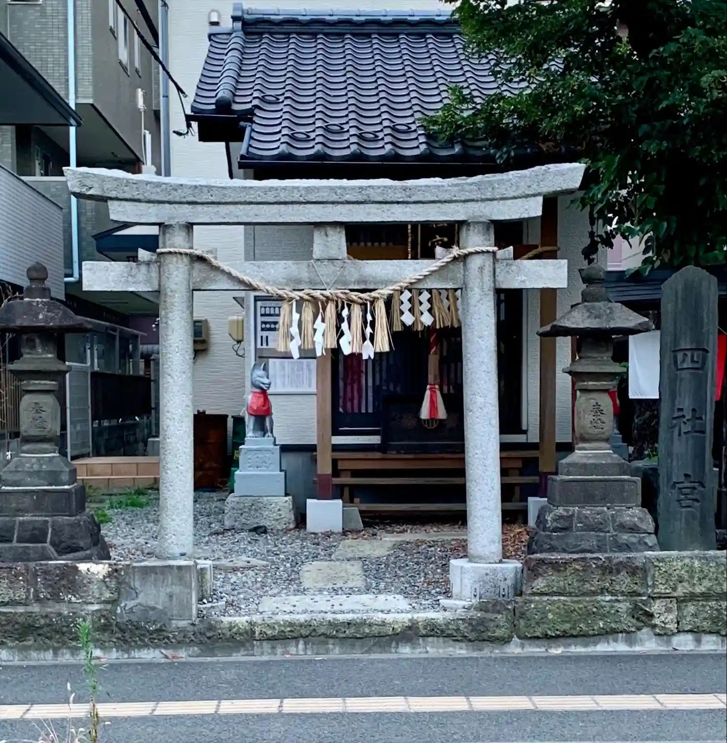 ビルの間に小さな神社があります。
