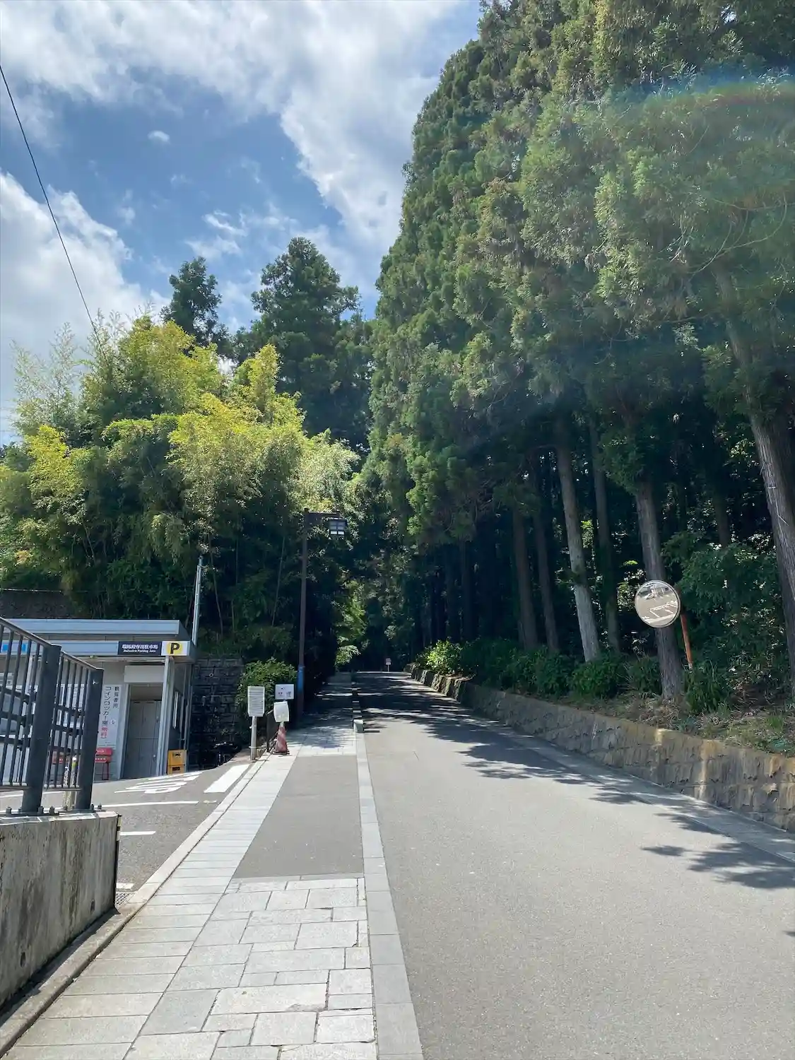 瑞鳳殿前のバス停から石畳の坂道を登る。道は高い木が良い感じに日陰にな…