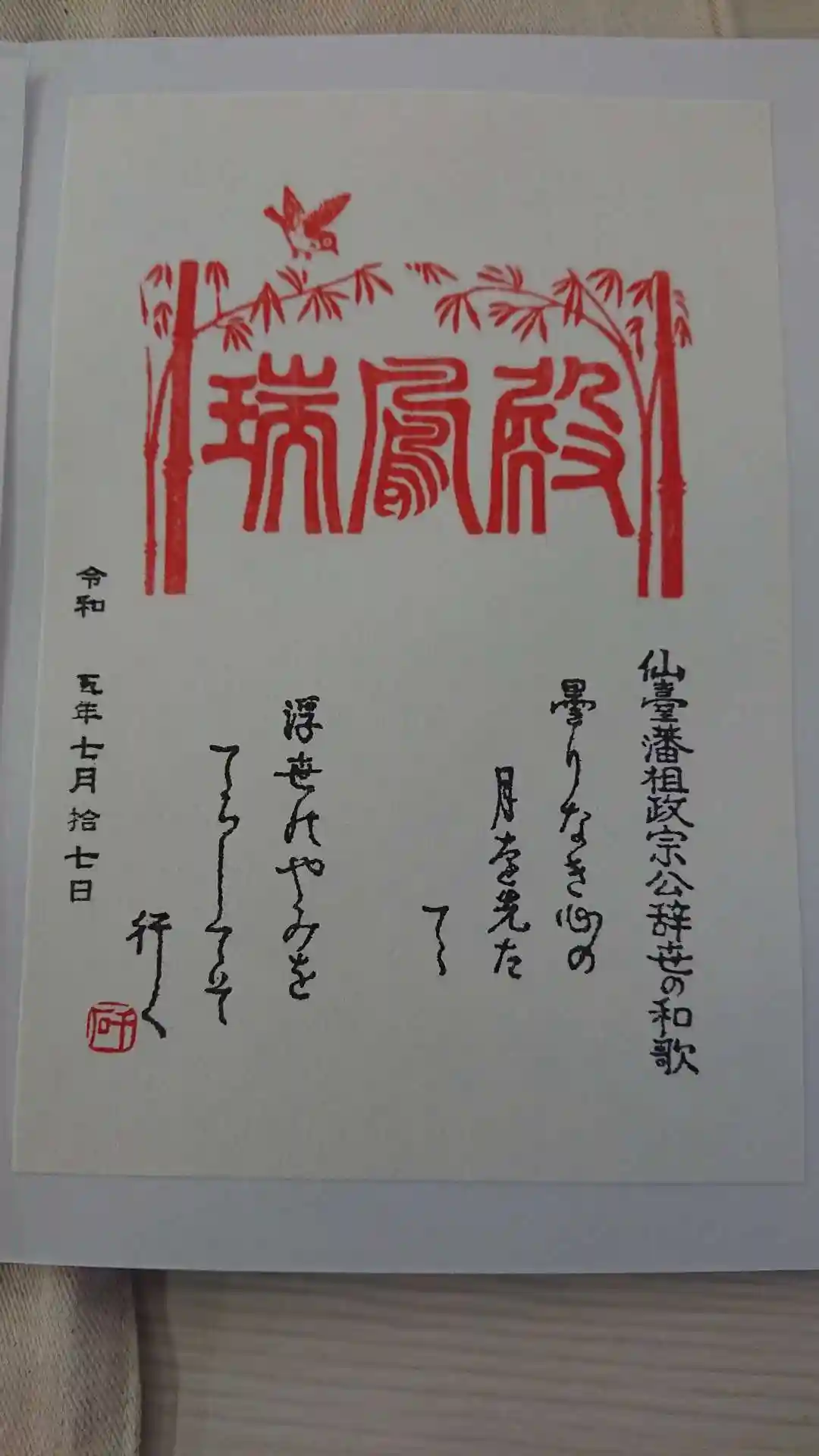 添付画像は瑞鳳殿の御集印