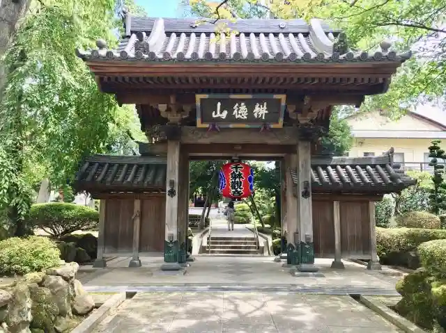 駐車場を進むと山門。「千体観音」と書かれた大提灯。
