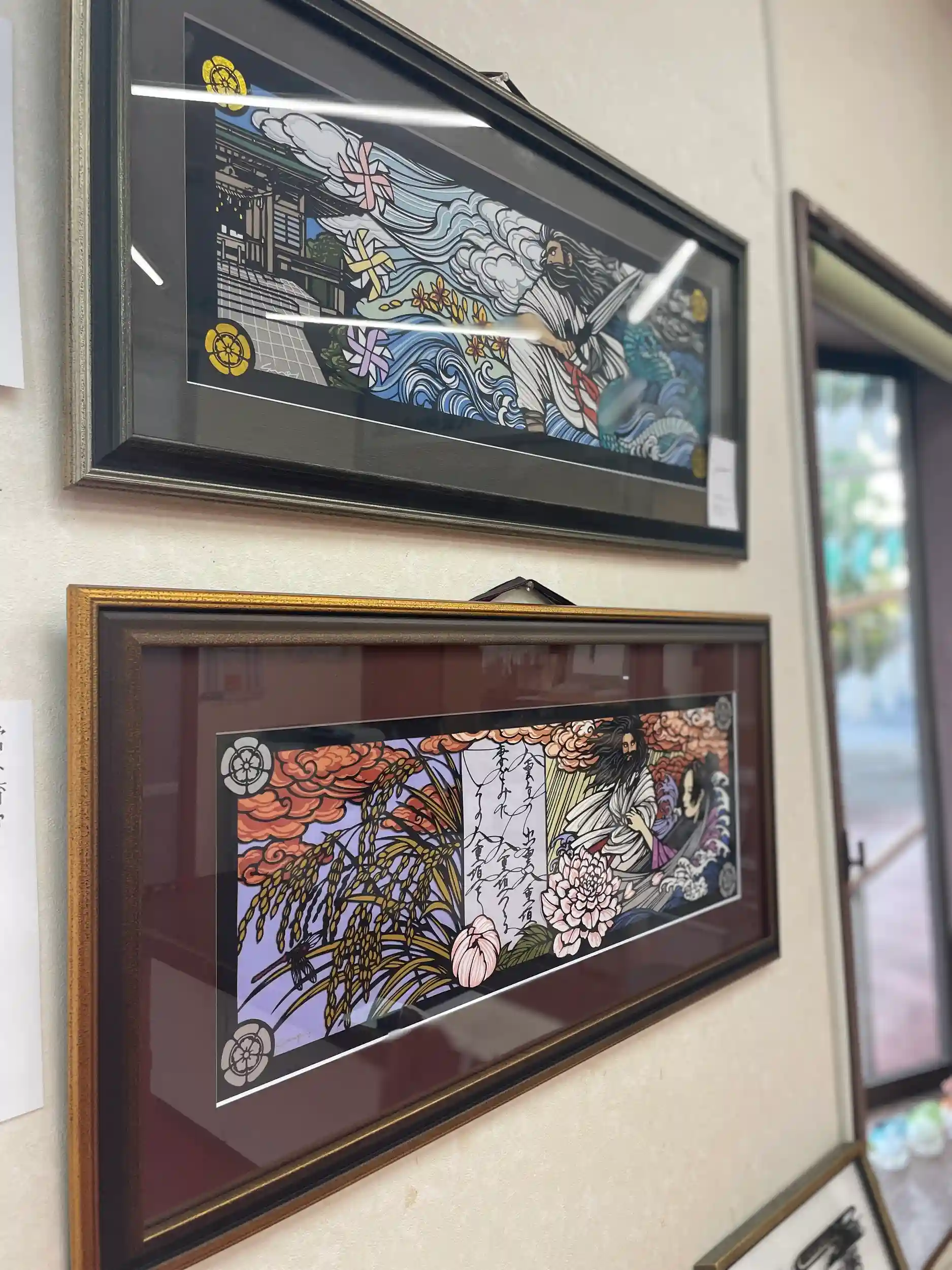 また、社務所入口内にこの御朱印の切り絵の原画を展示しております。