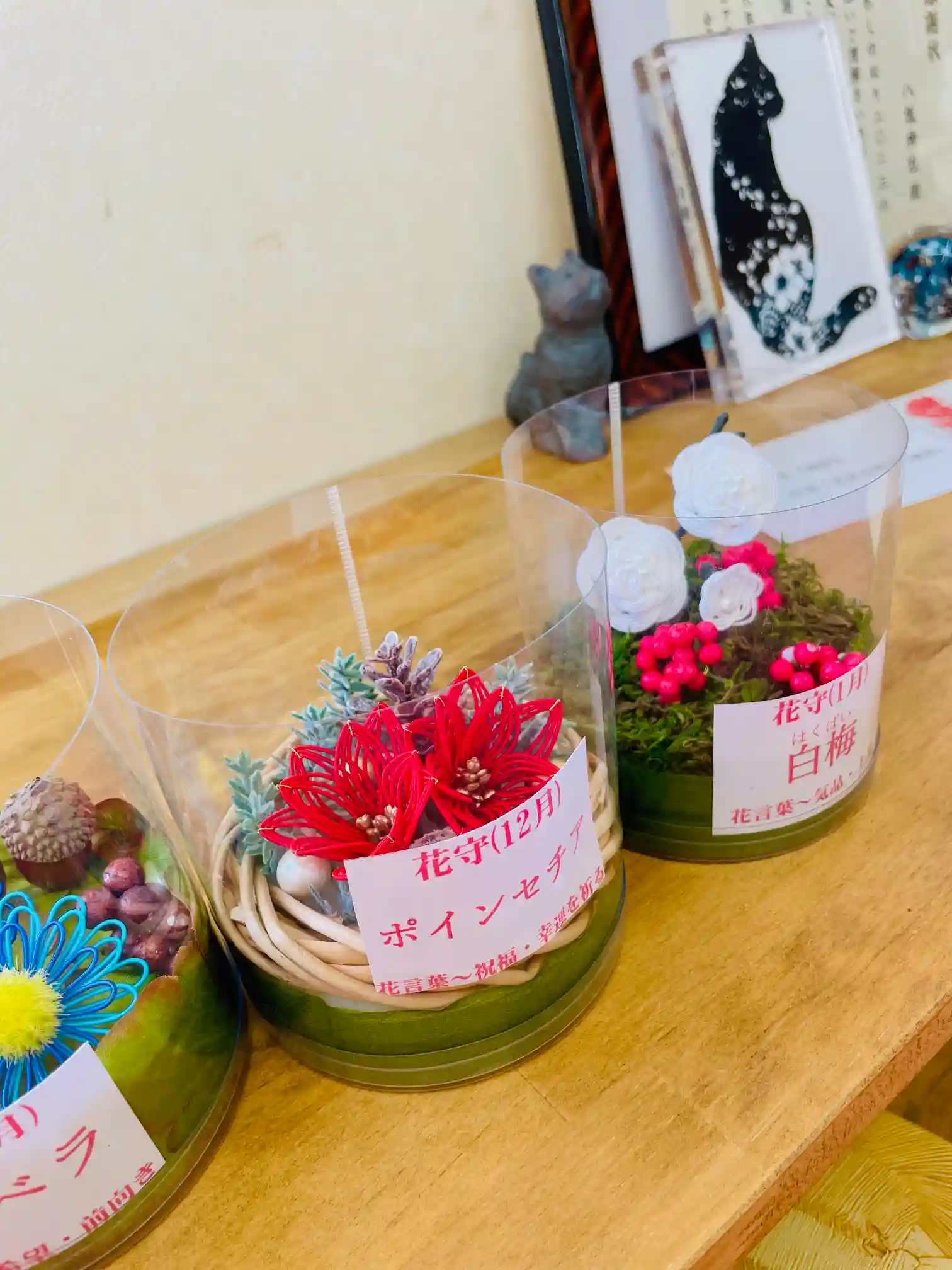 非売品にはなりますが、社務所玄関にこれまでの花守で製作いただいたアレンジを置いてありますので、ご朱印などでお待ちの間に、ご覧になっていただけたらと思います☺