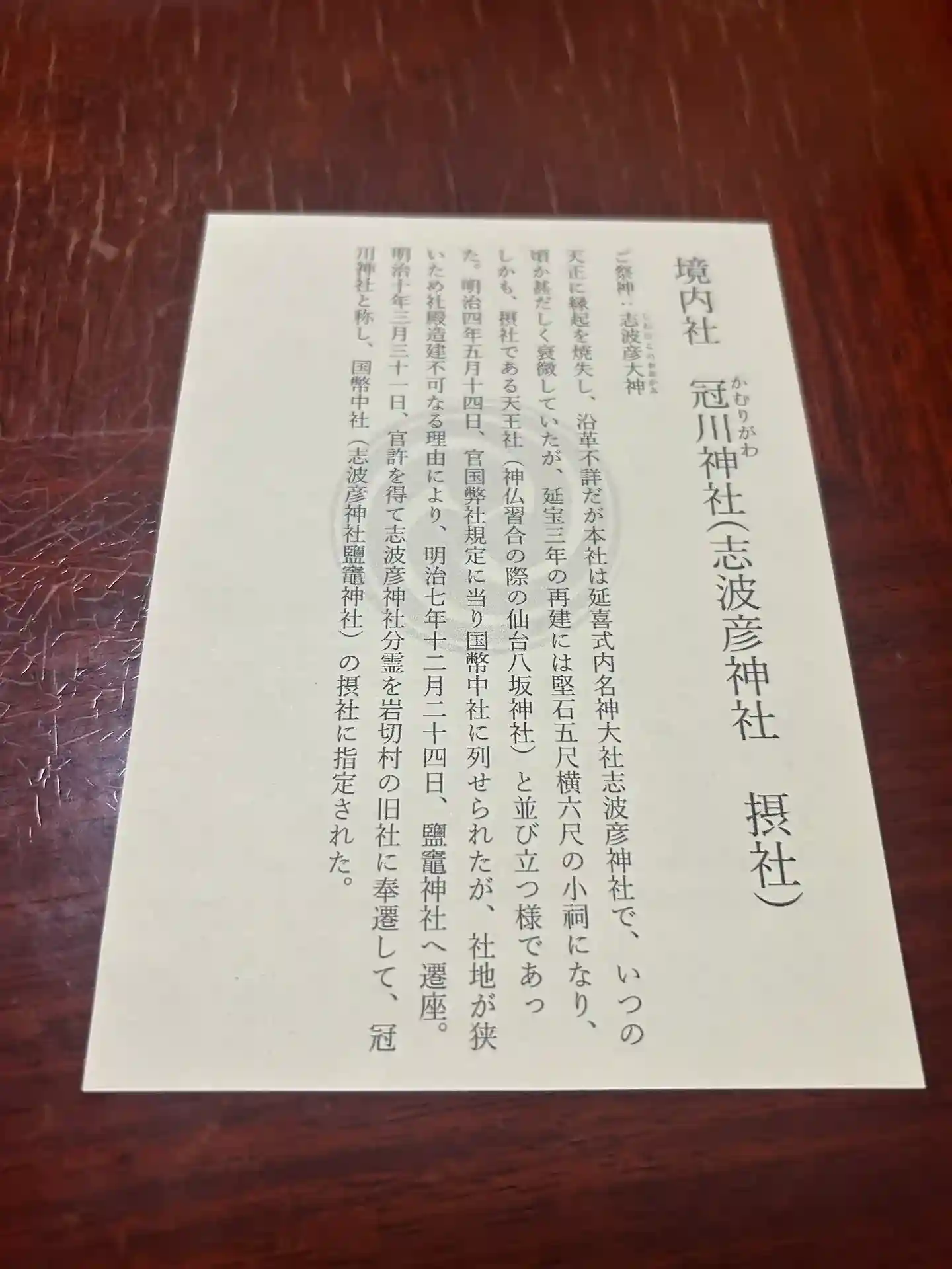 本殿でお参り後、社務所にて直書きの八坂神社と冠川神社の御朱印と素戔嗚尊の書置きの御朱印、例大祭の限定切り紙御朱印を頂戴しました。