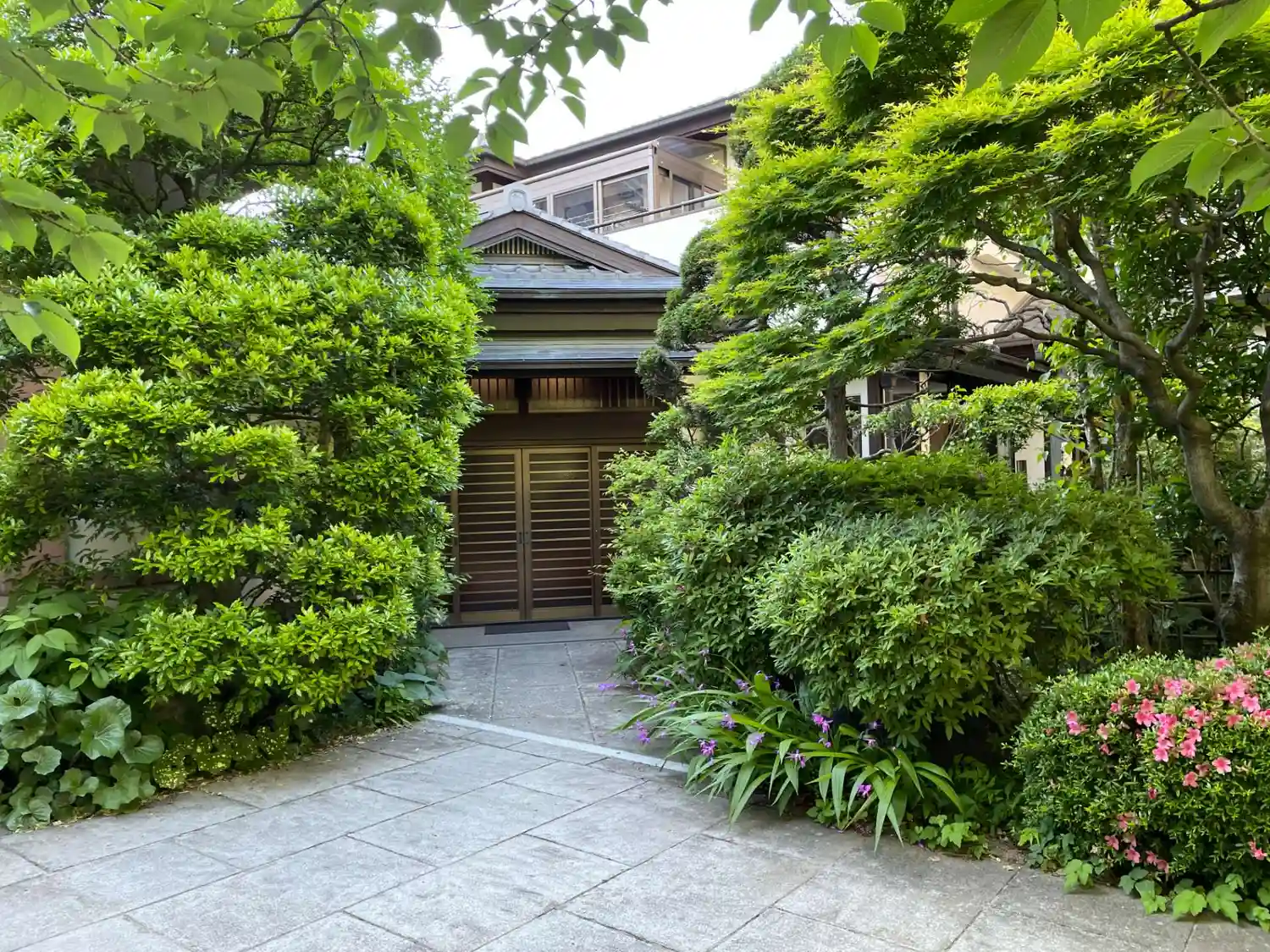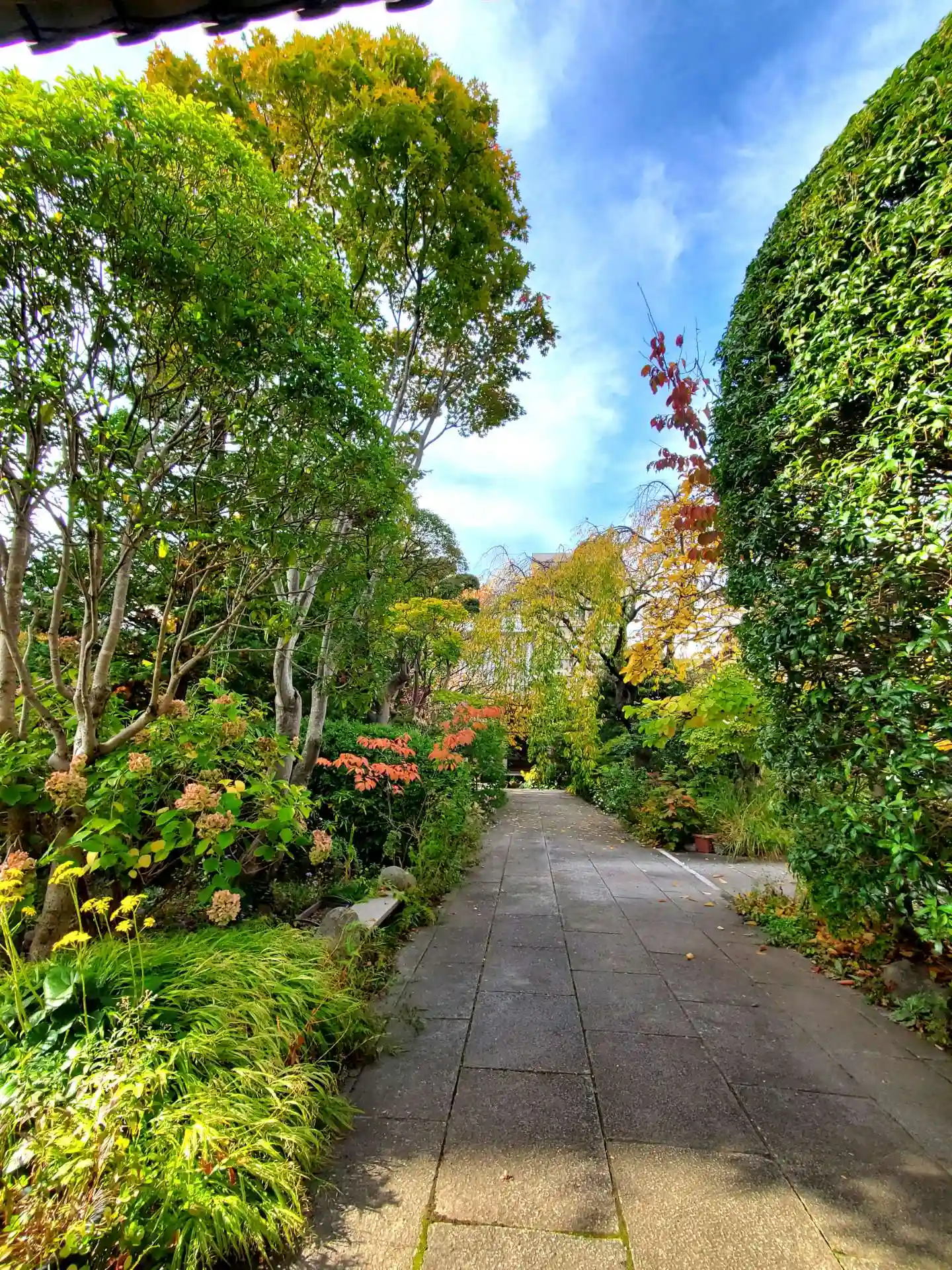 中に入ると 両側を木が美しく生い茂る石畳の道が続きます。