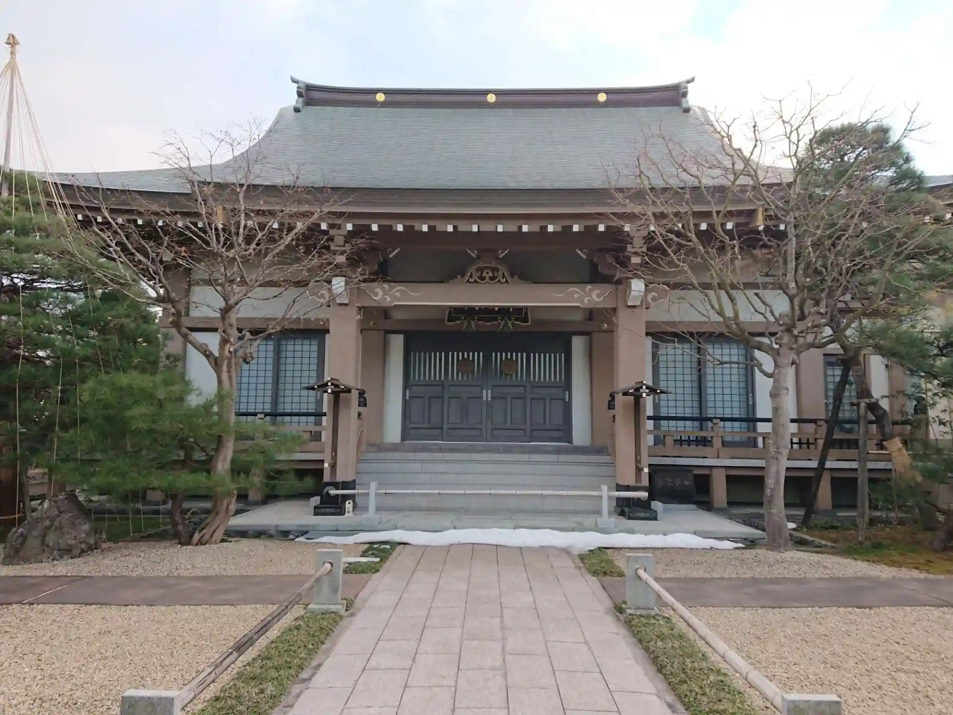 まっすぐ延びる参道の先で門をくぐり大きな本堂を見ることができます。