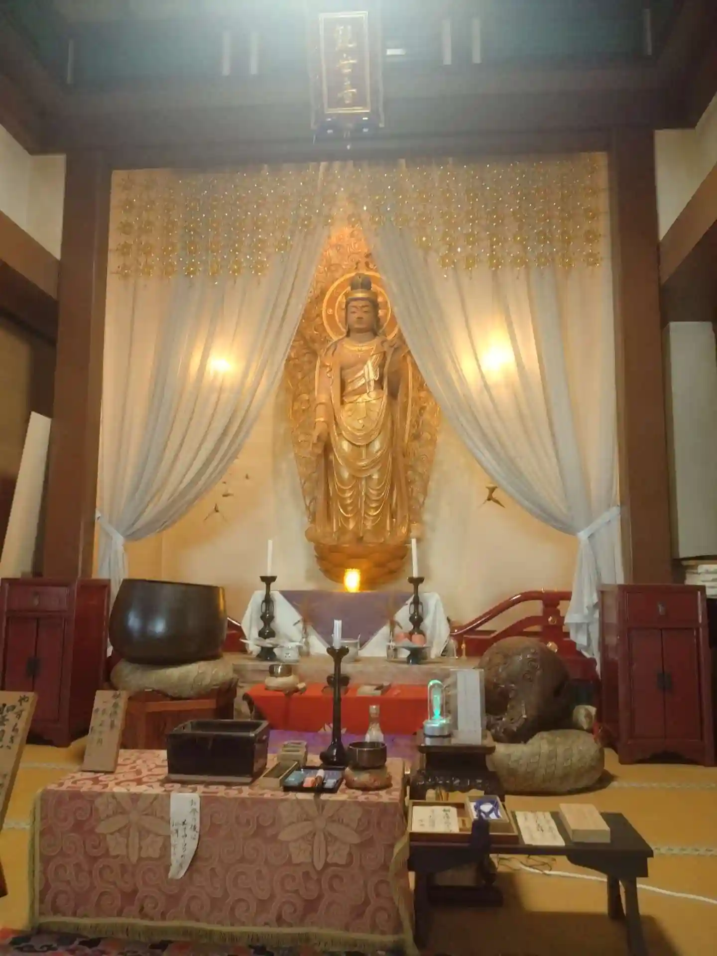 林香院 講堂内にある(弁才天様旗)の様子です