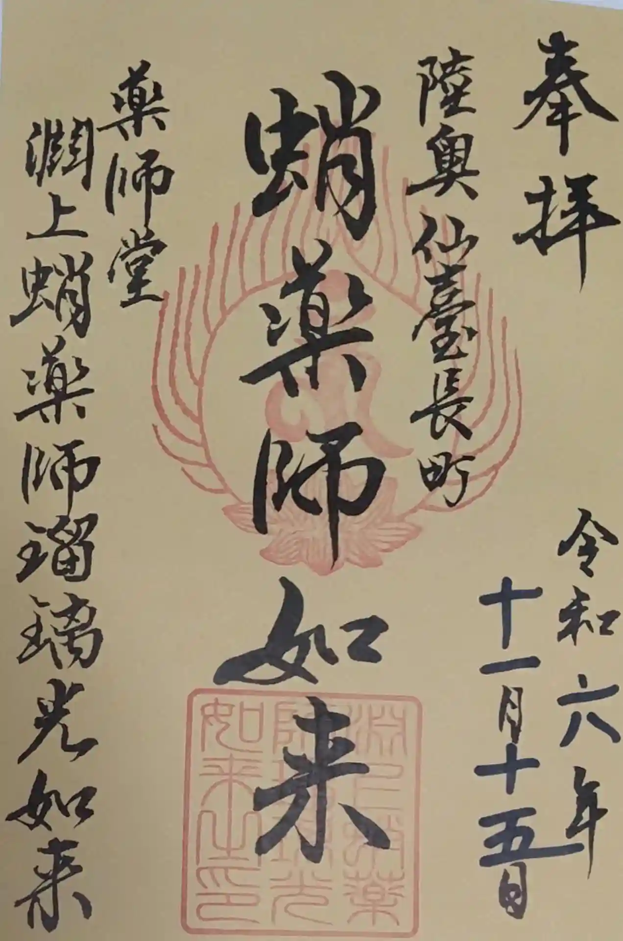 舞臺八幡神社 淵上蛸薬師瑠璃光如来様の書き置き御朱印です