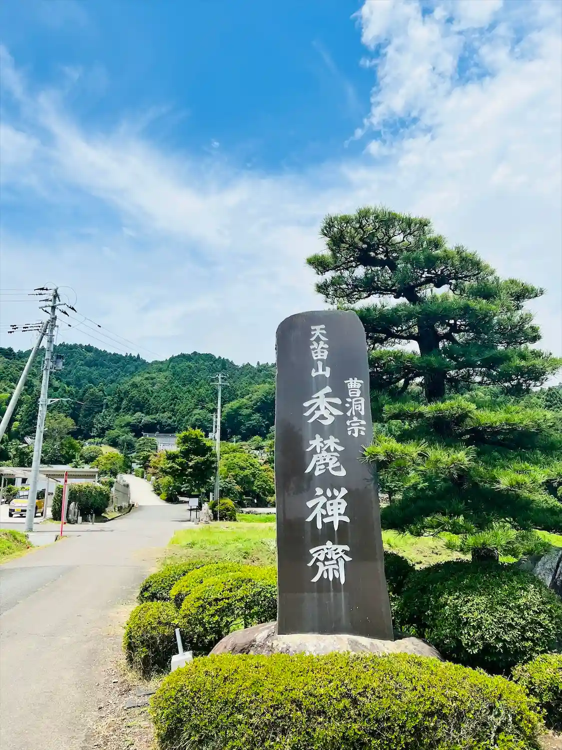 天苗山秀麗齊 入口からの(曹洞宗天苗山秀麗齊)寺号、参道の様子です