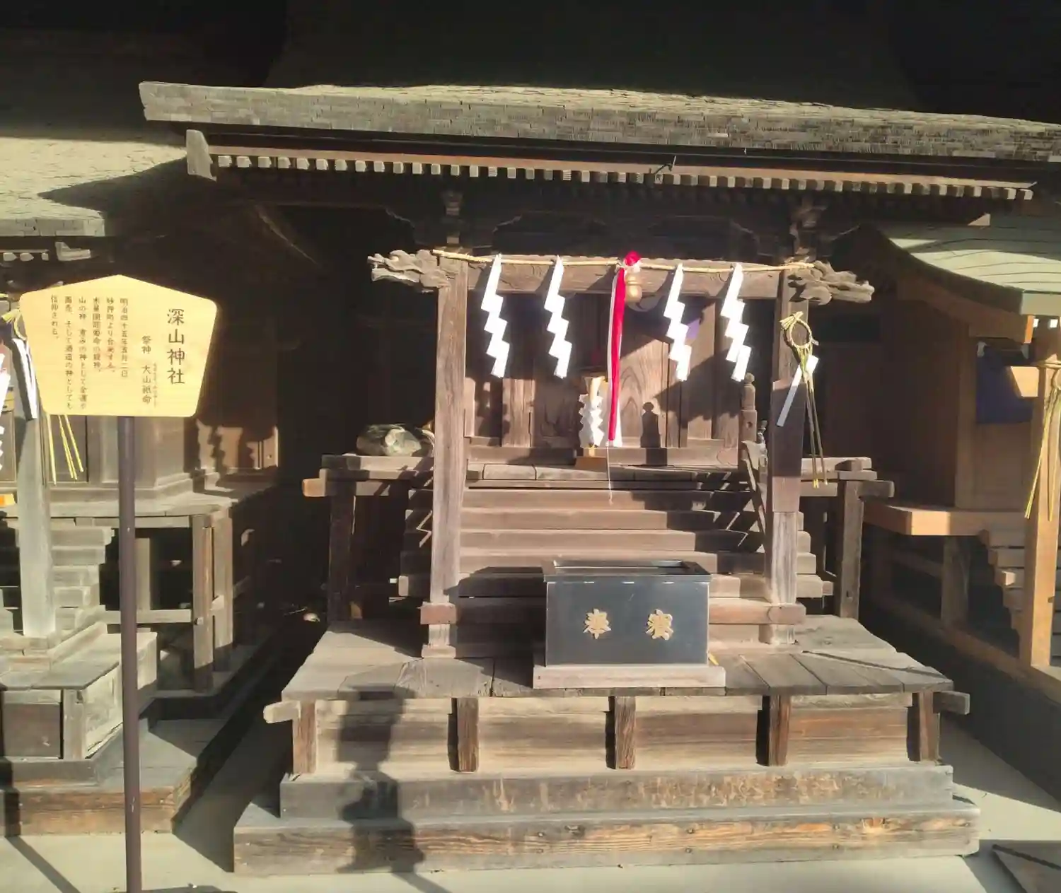 諏訪神社 拝殿前正面左側に、深山神社祭神 大山祇神様の小祠があります