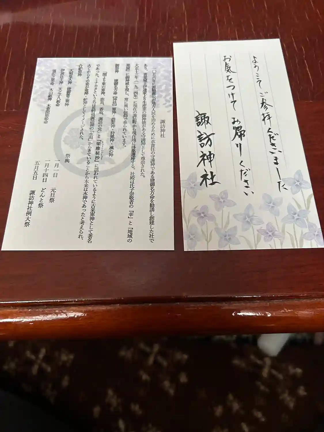 諏訪神社 御朱印と一緒に、入っていた栞です