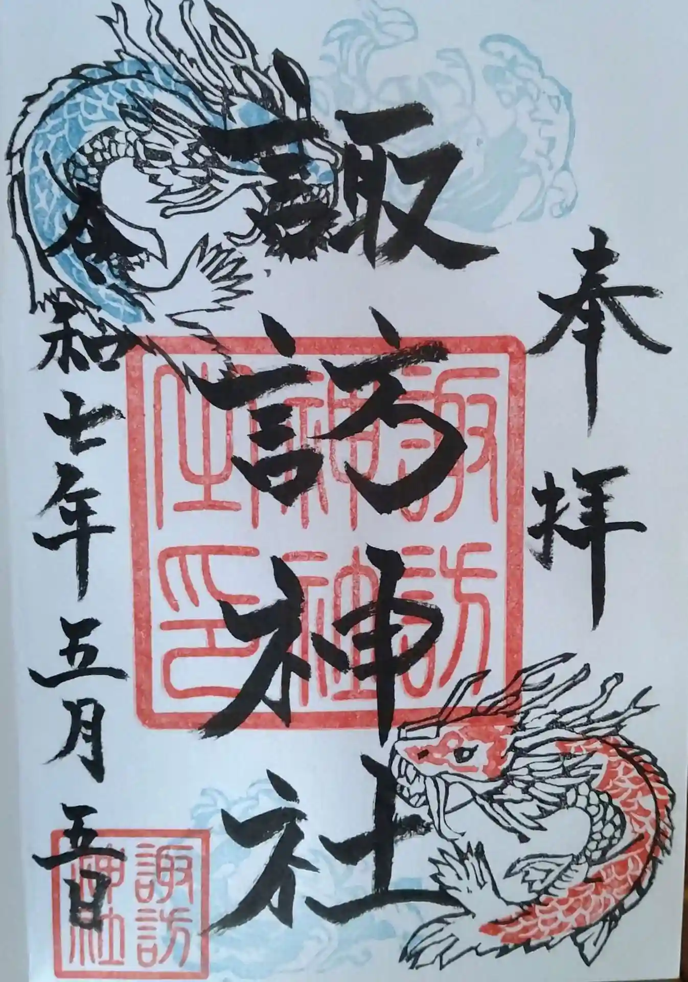 諏訪神社 五月限定御朱印(直書き御朱印)頂戴致しました(五月五日:諏訪神社例大祭日)ですが(朝8時ぐらいに行きました)