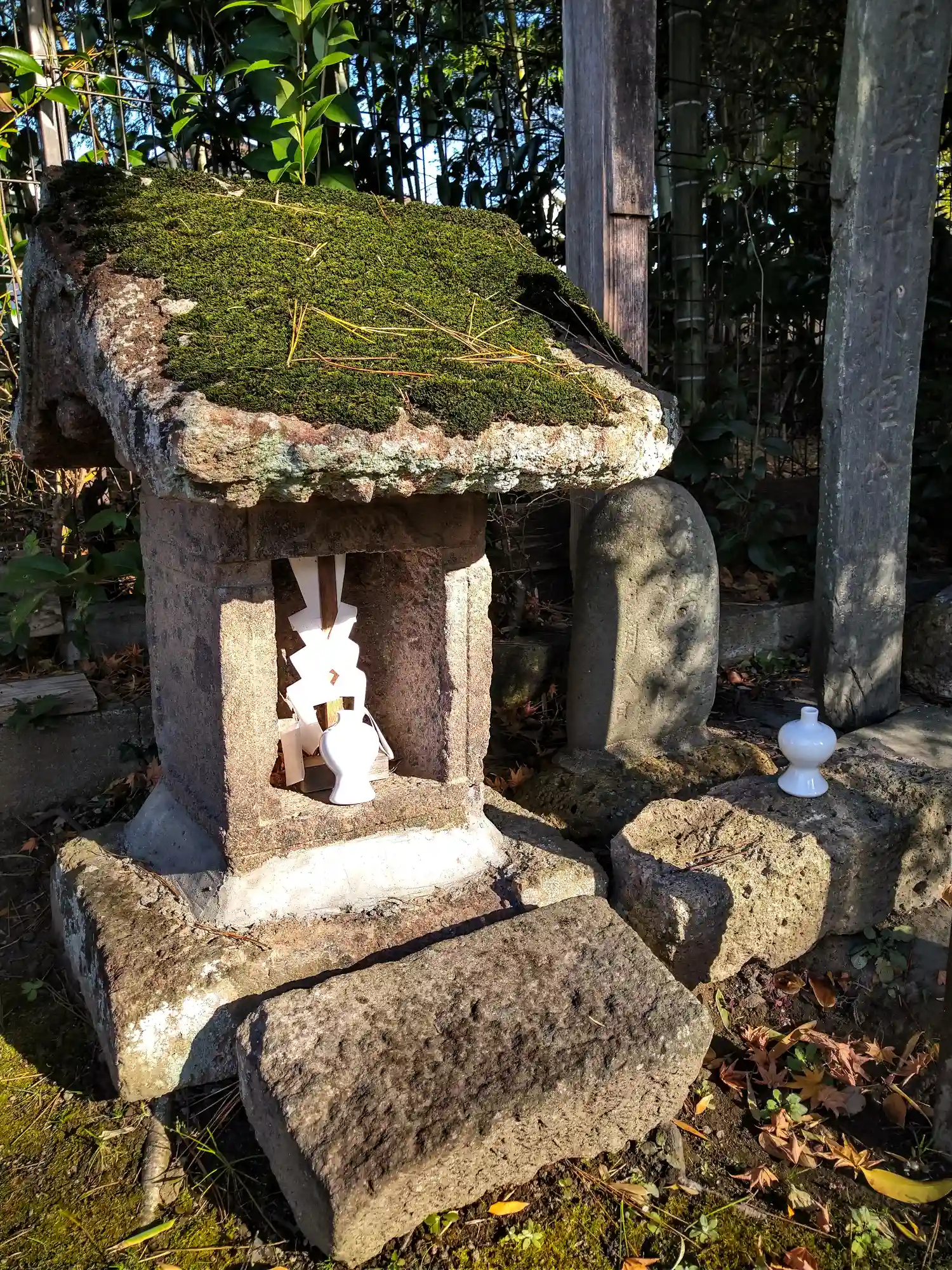 諏訪神社 境内奥側にある 石祠の様子です