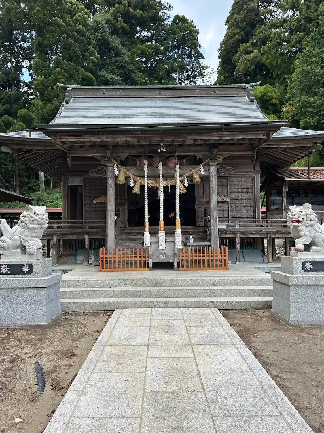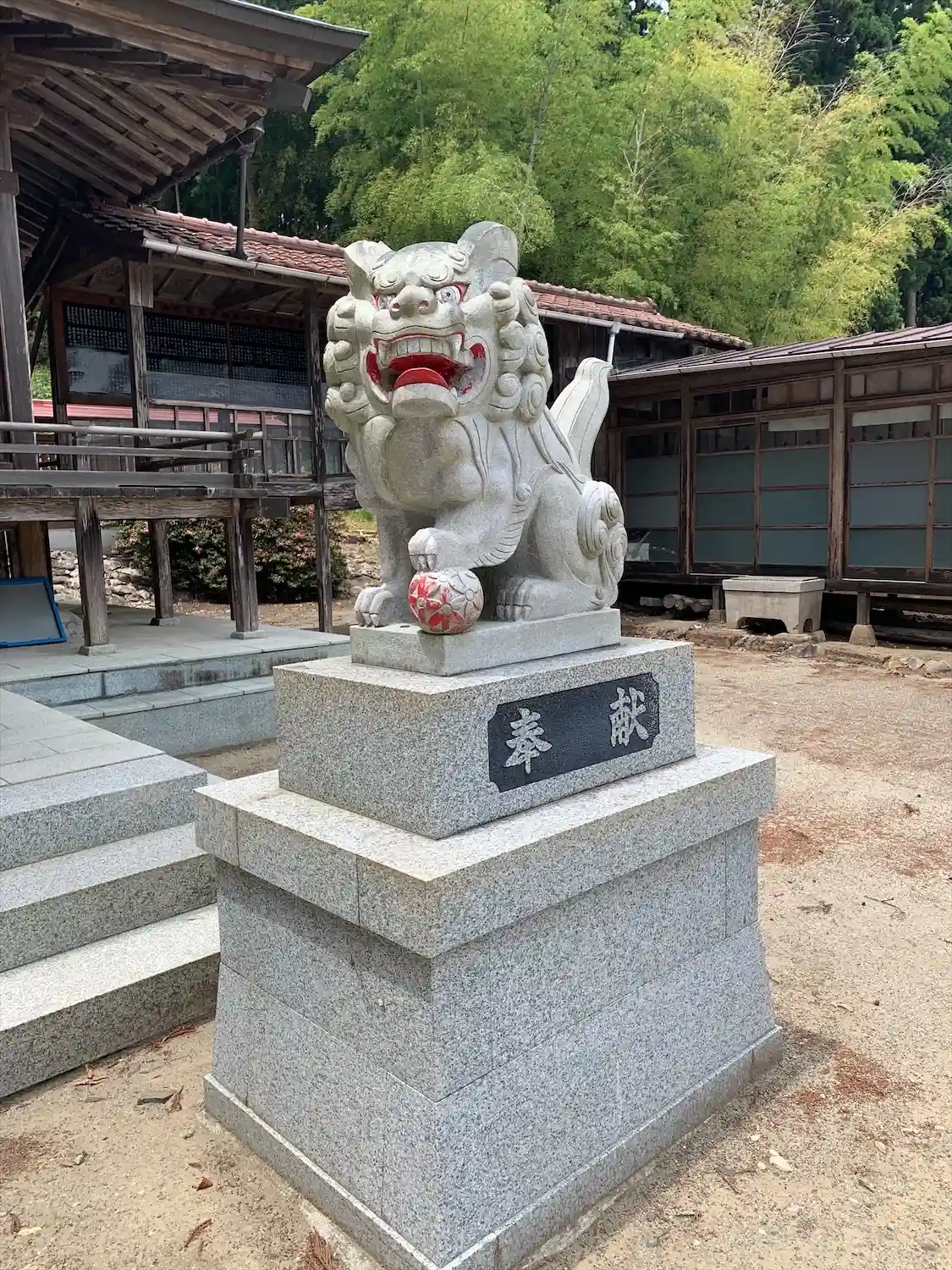 熊野本宮社 拝殿前に鎮座する(阿形の狛犬さん)の様子です