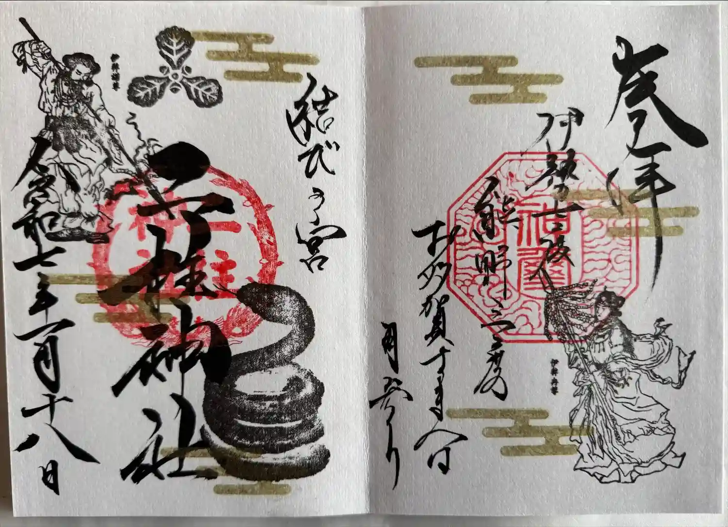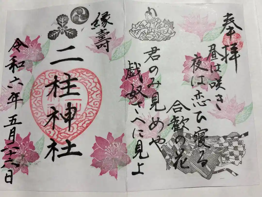 二柱神社 右側伊邪那美 左側伊邪那岐の見開き御朱印です