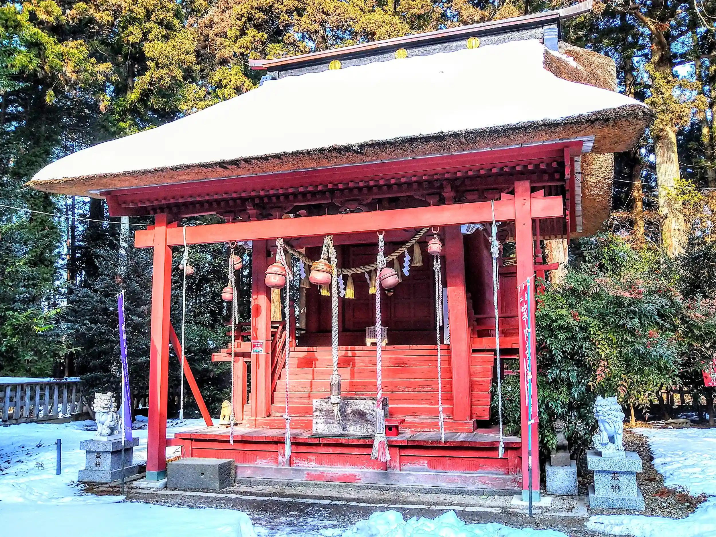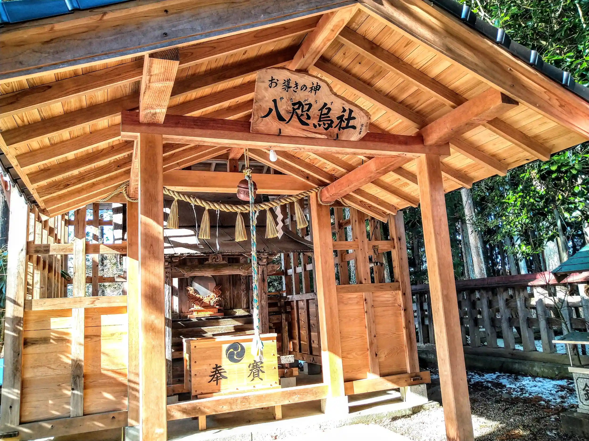 雪が残る社殿に、朝の柔らかい陽射しが差し込んでいました✨