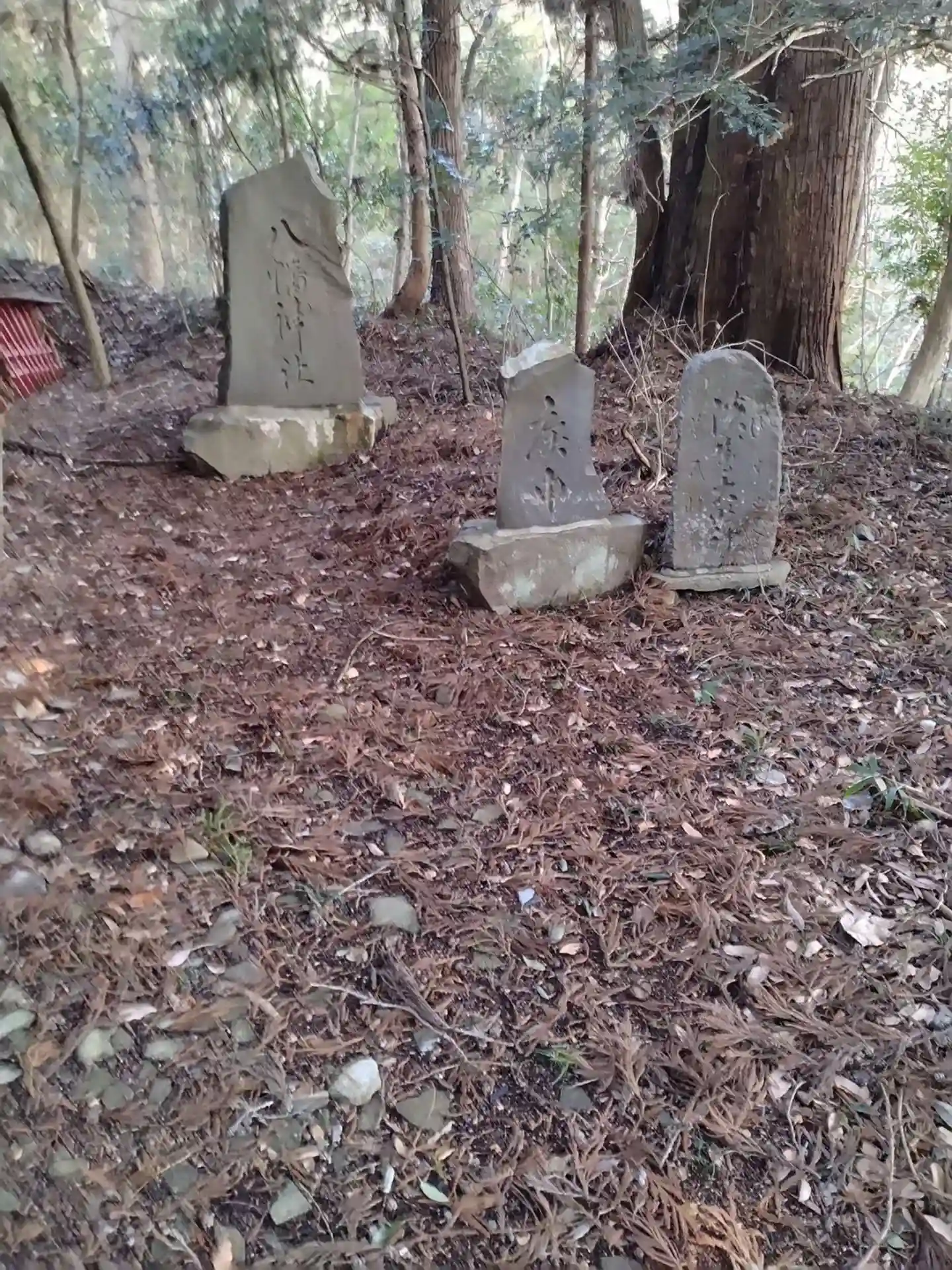 神明社(関場) 境内にある 八幡神社の社塔と庚申、石碑です