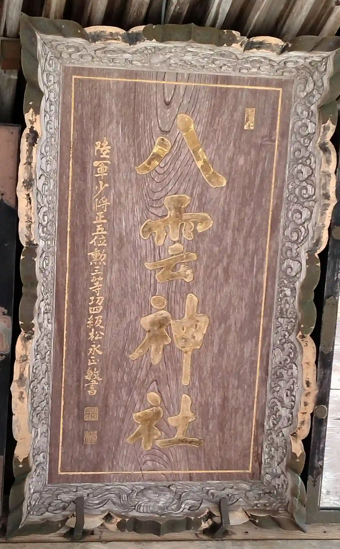 八雲神社(入間田) 拝殿前左上掲げてある 屏額と額です