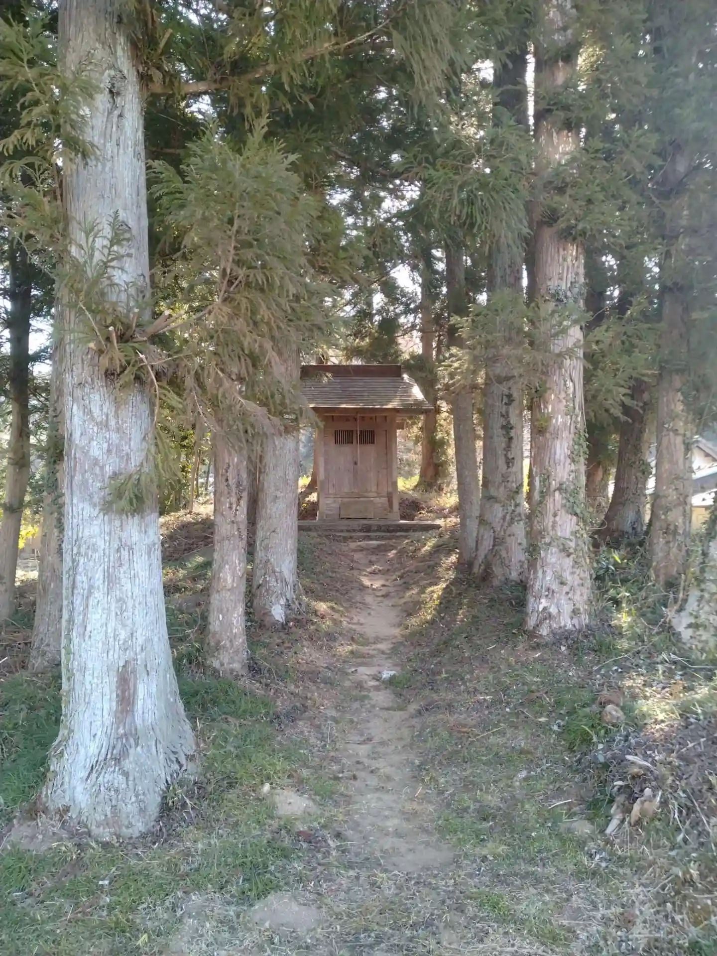 大黒天(鳩原)道路側から見た、参道の様子です(木々に囲まれていていました