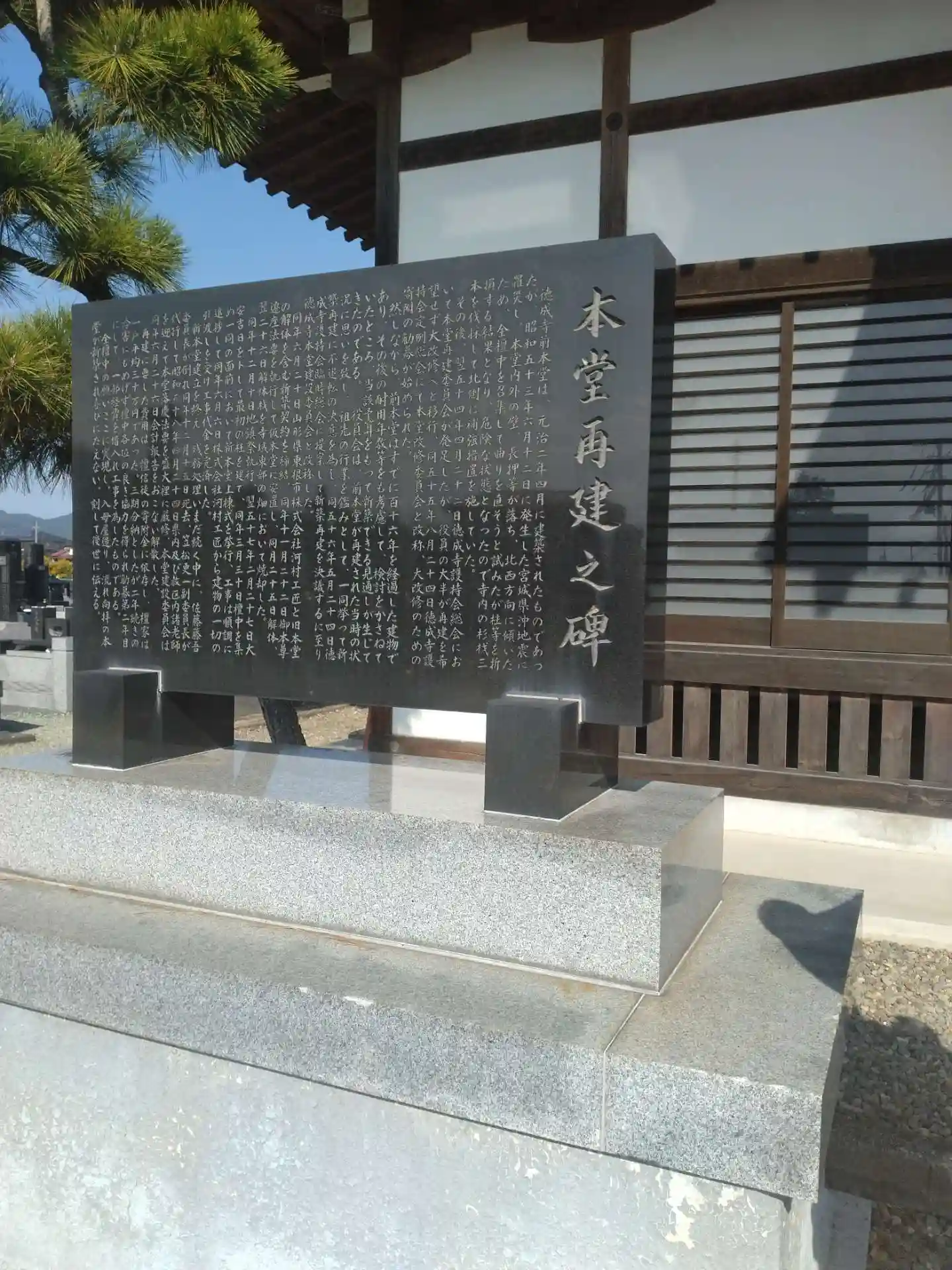 徳成寺 講堂左側にある(本堂再建之碑)です