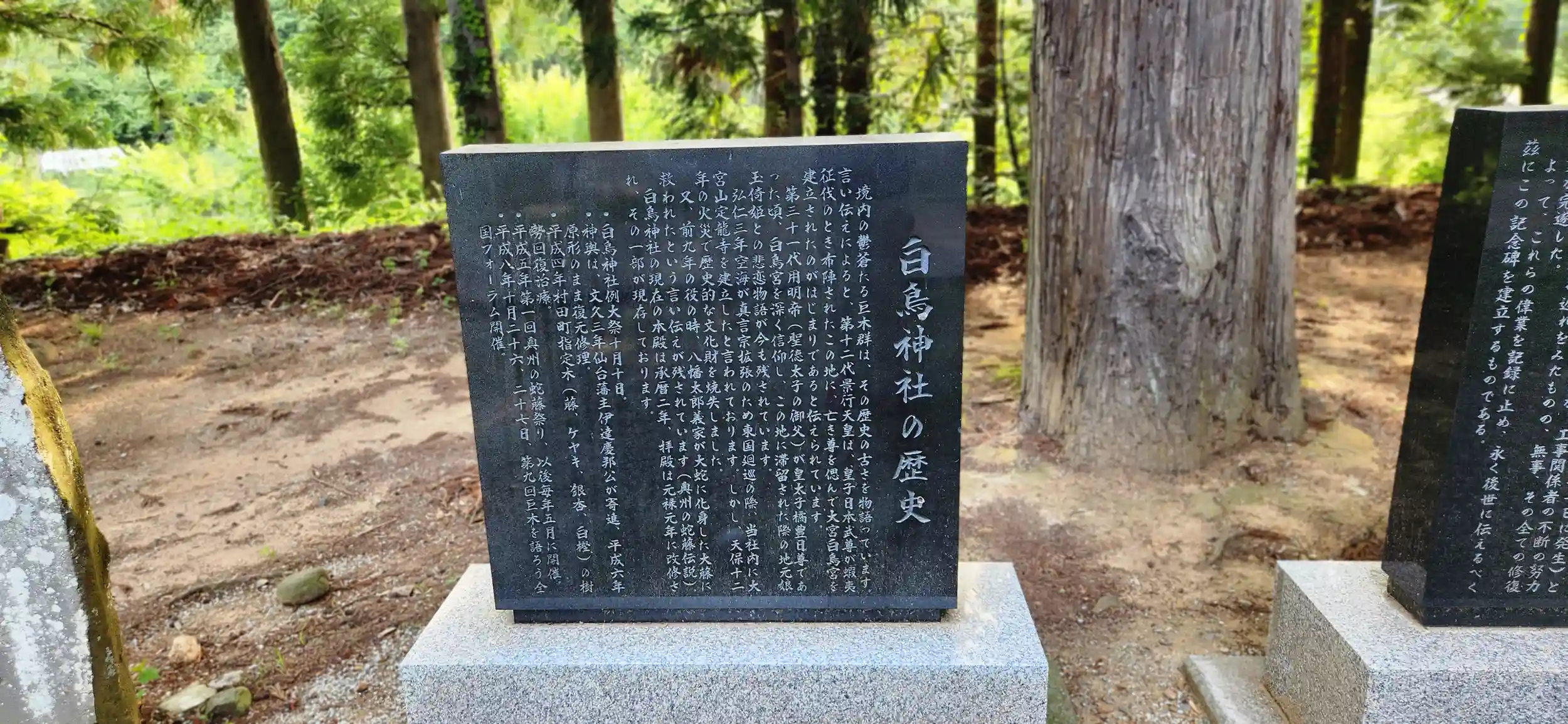 白鳥神社の由来書きの石碑。